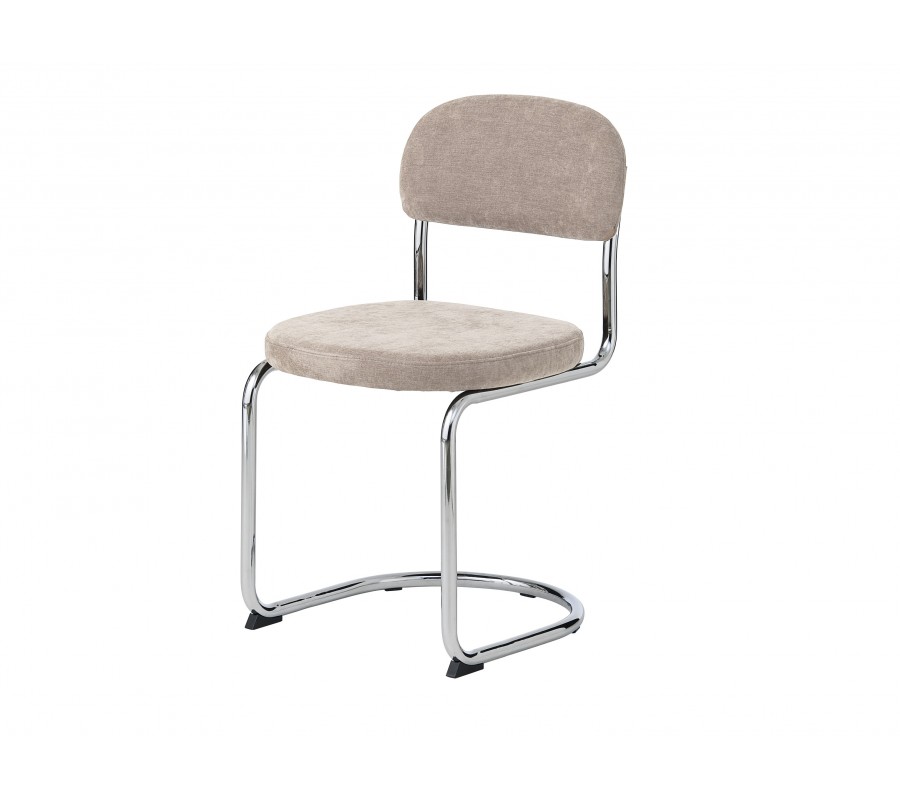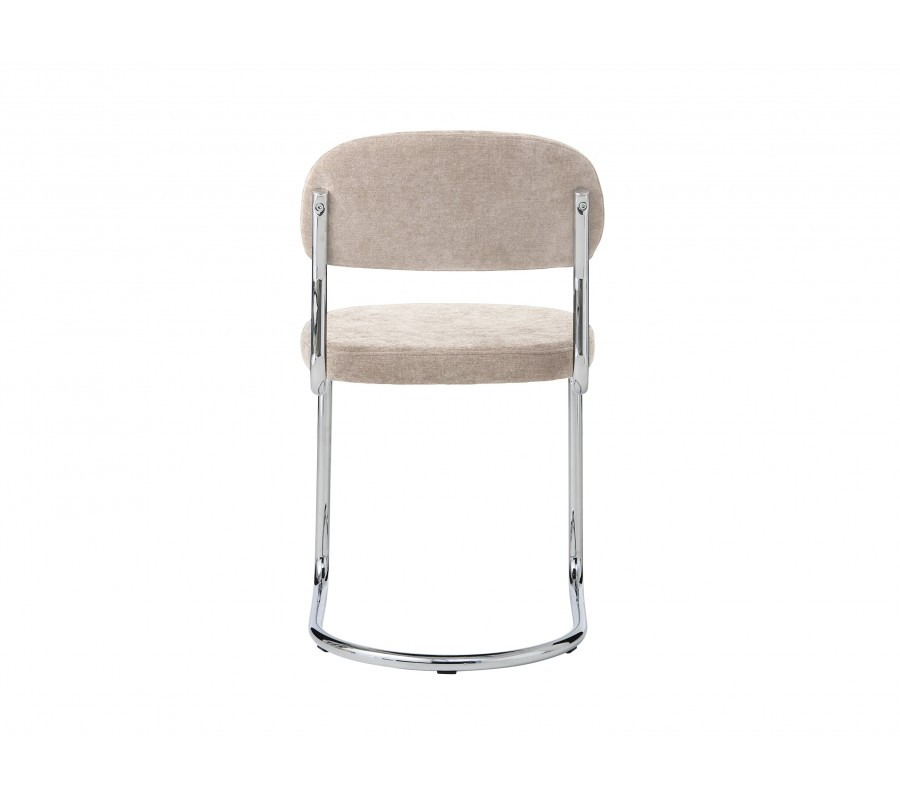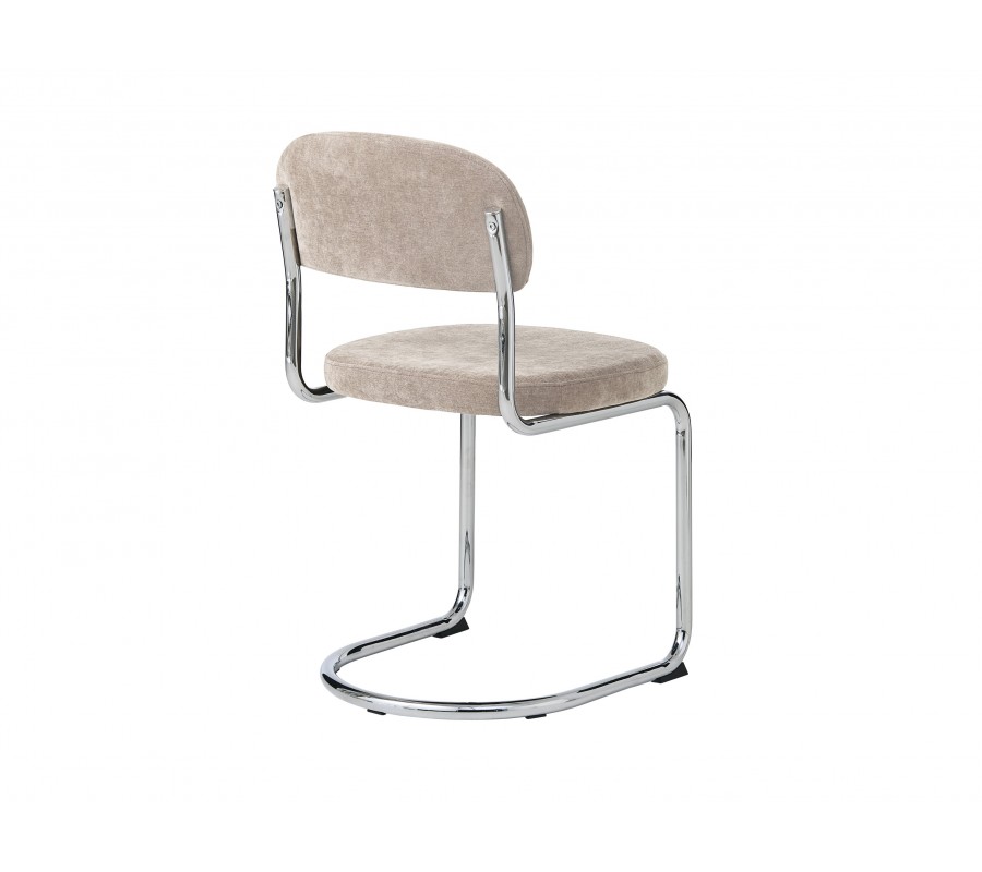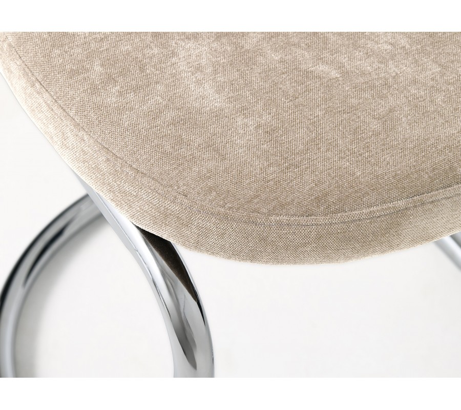 Moderná chrómová jedálenská stolička Kromo s konzolovým lesklým kovovým rámom a svetlým béžovým ženilkovým poťahom 48 cm