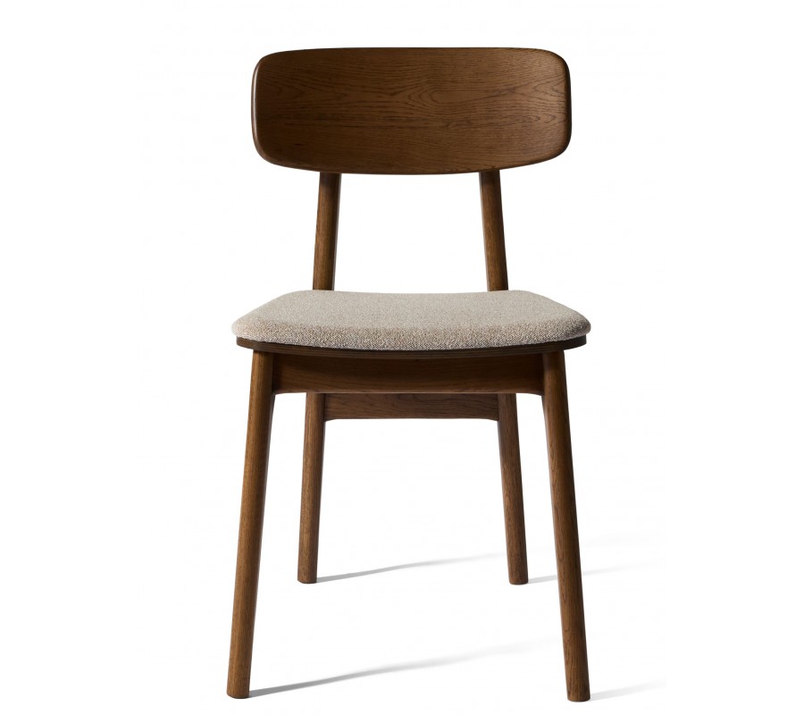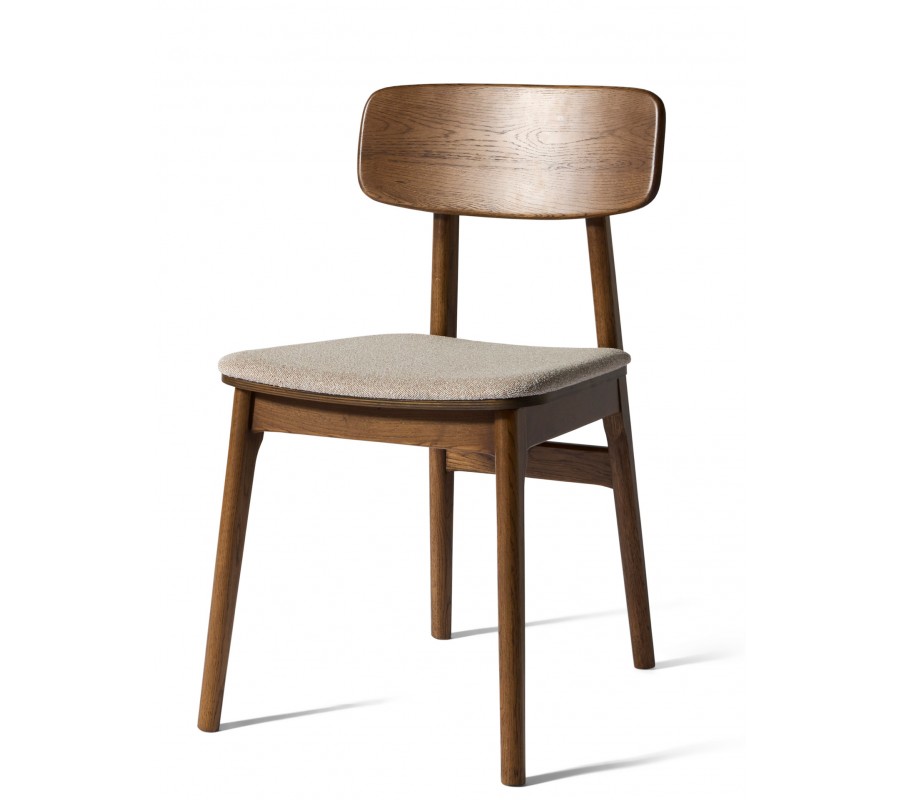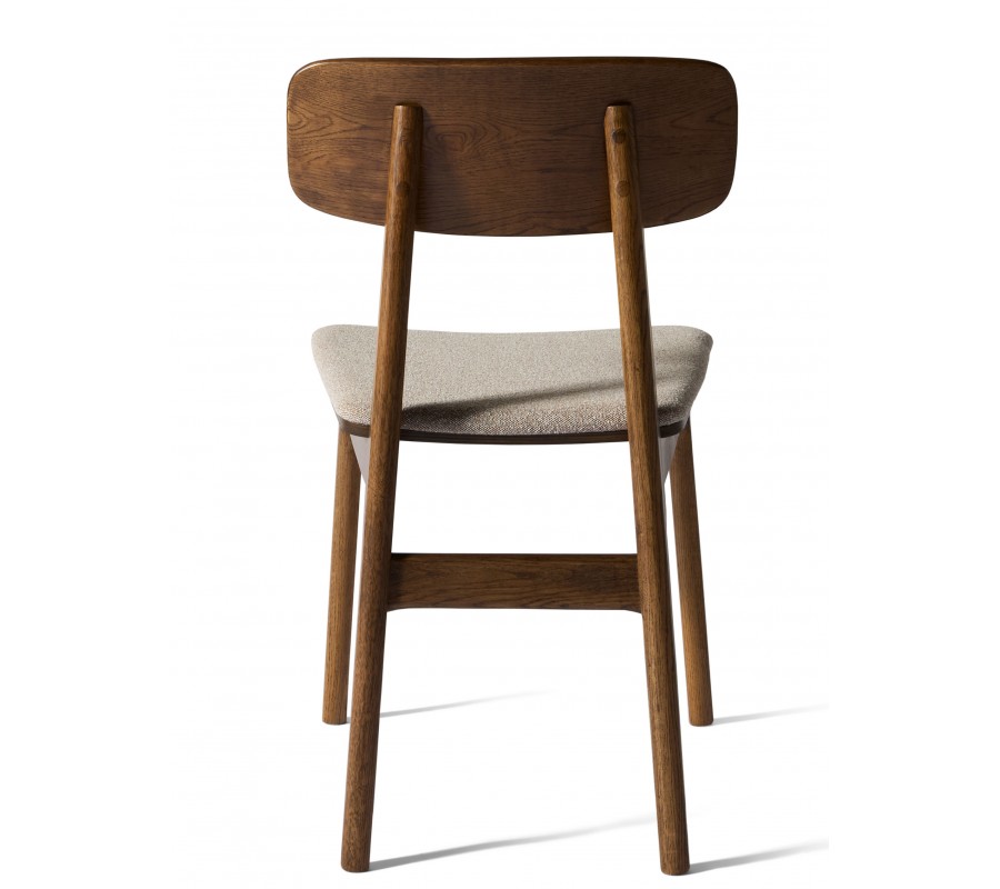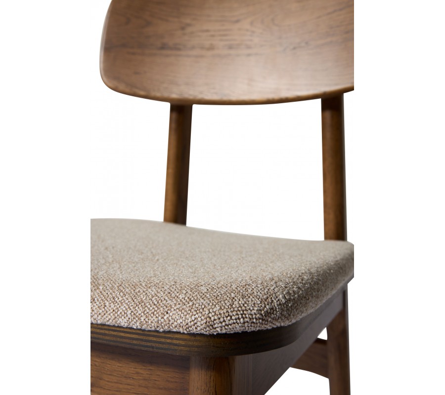Rám stoličky je vyrobený z masívneho dubového dreva. Tmavá hnedá povrchová úprava necháva zachovanú kresbu letokruhov a stoličke dodáva teplý prírodný vzhľad.