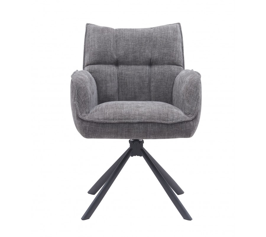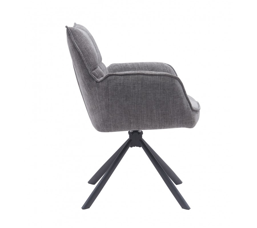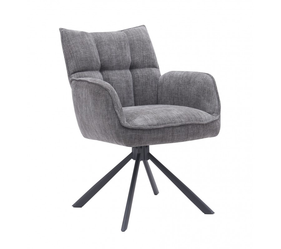 Industriálna otočná sivá jedálenská stolička Laerke s prešívaným ženilkovým čalúnením a čiernou kovovou podstavou 59 cm