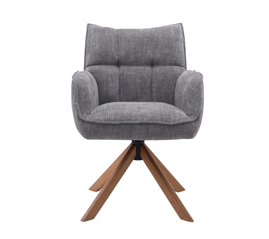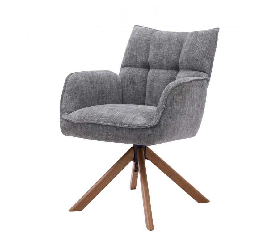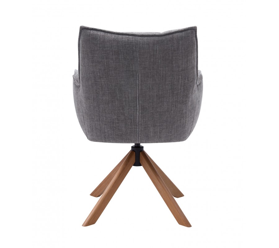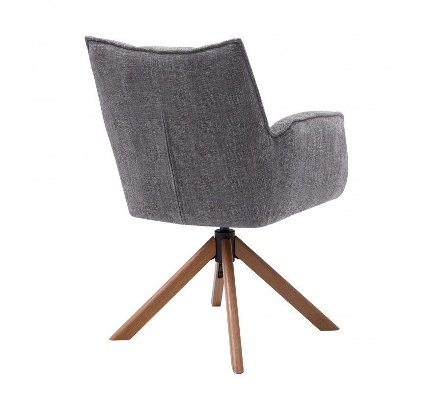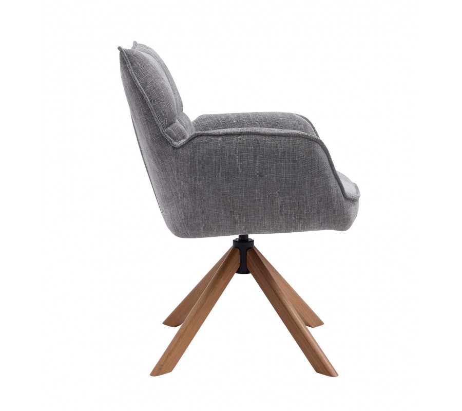 Škandinávska sivá jedálenská stolička Laerke s otočným sedadlom so ženilkovým čalúnením a hnedými dubovými nohami 59 cm
