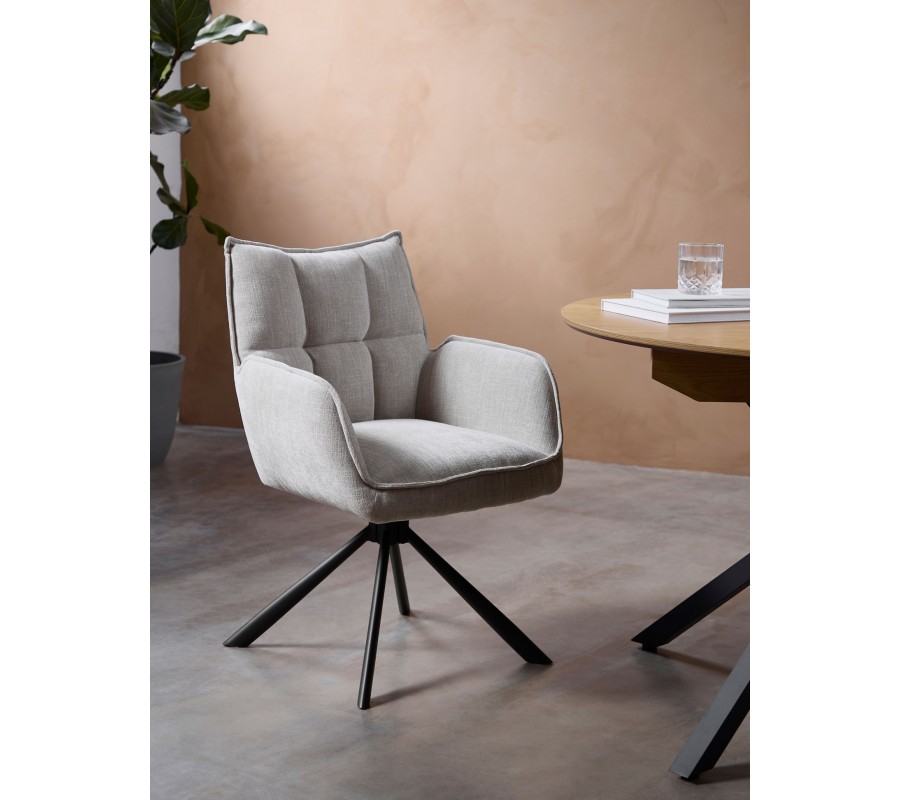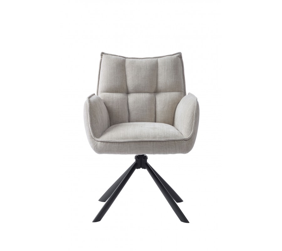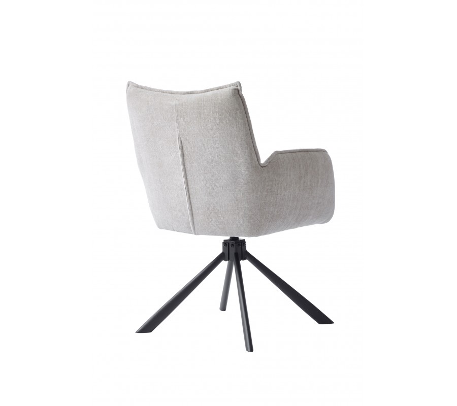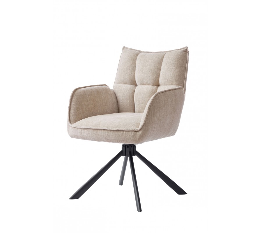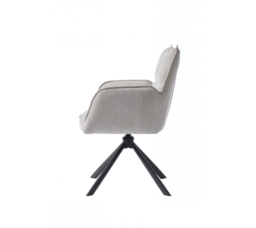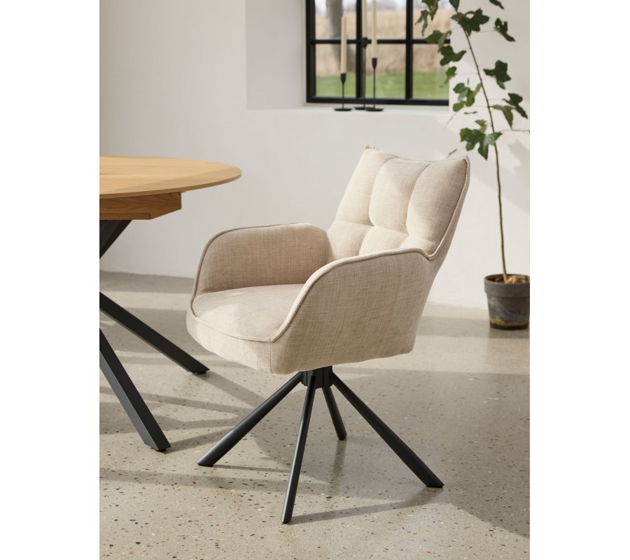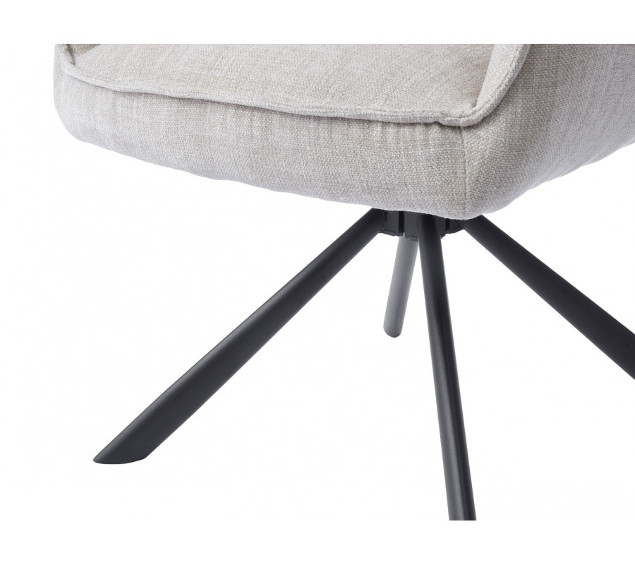 Moderná otočná jedálenská stolička Laerke so ženilkovým poťahom v svetlom béžovom odtieni s čiernou kovovou podstavou 59 cm