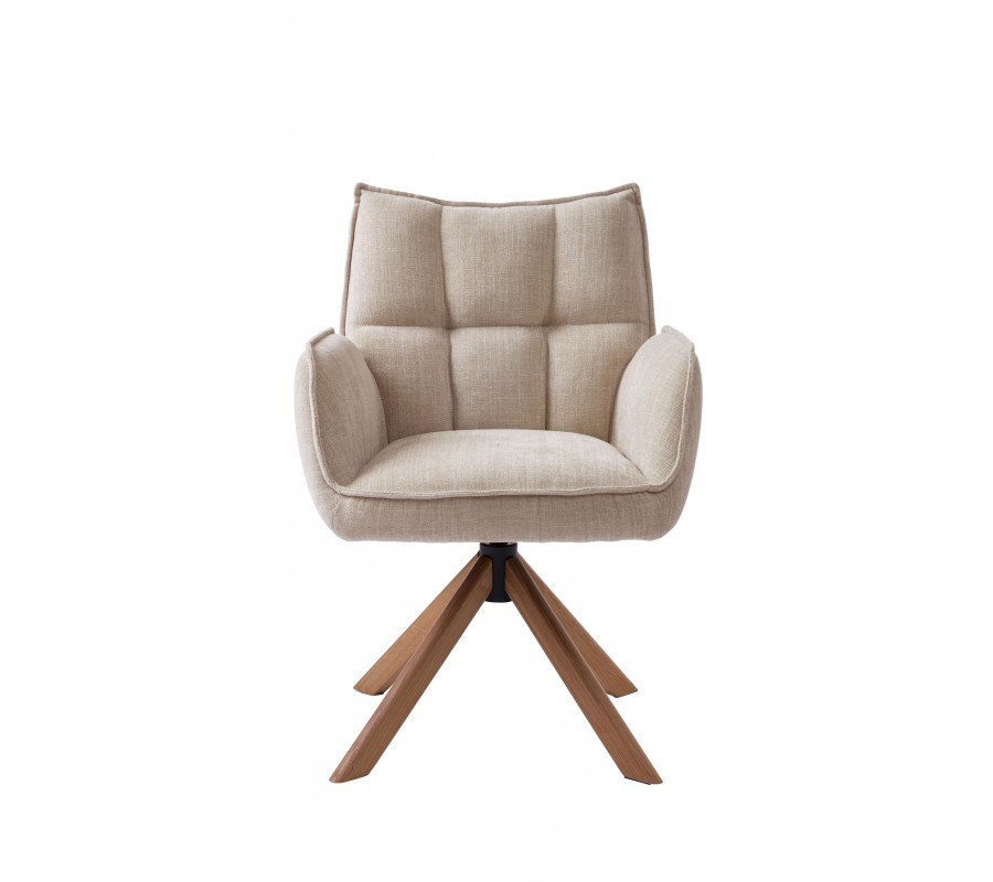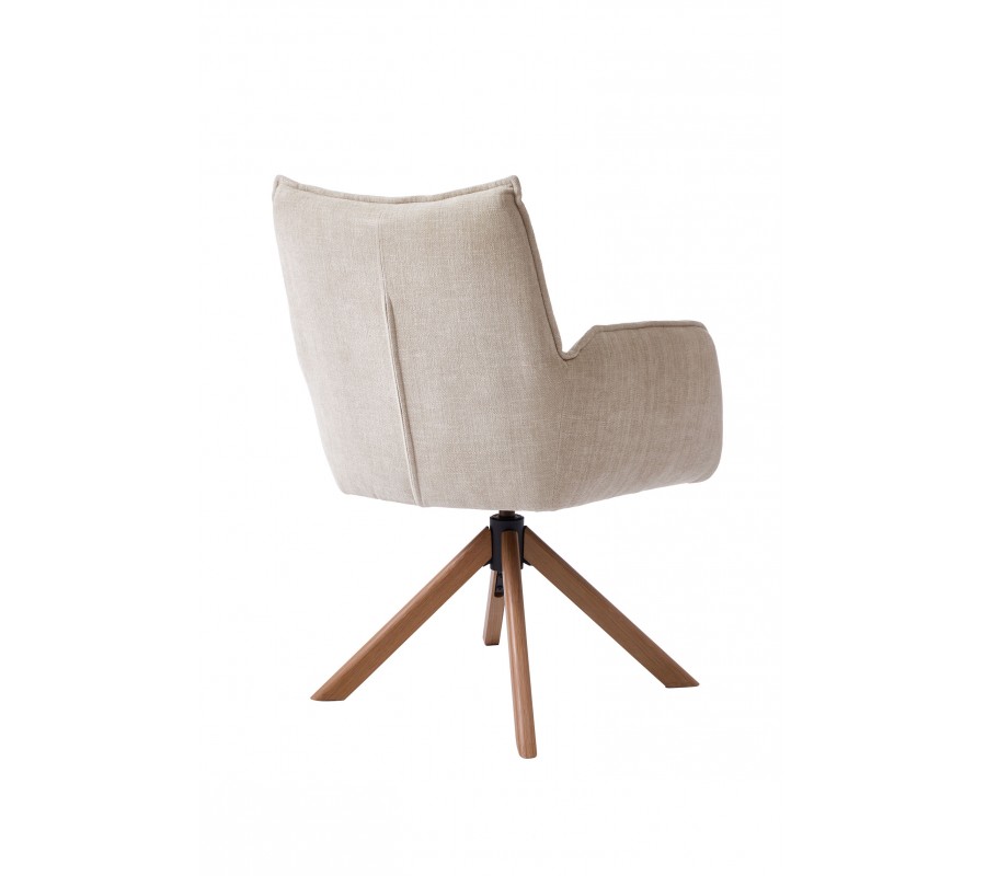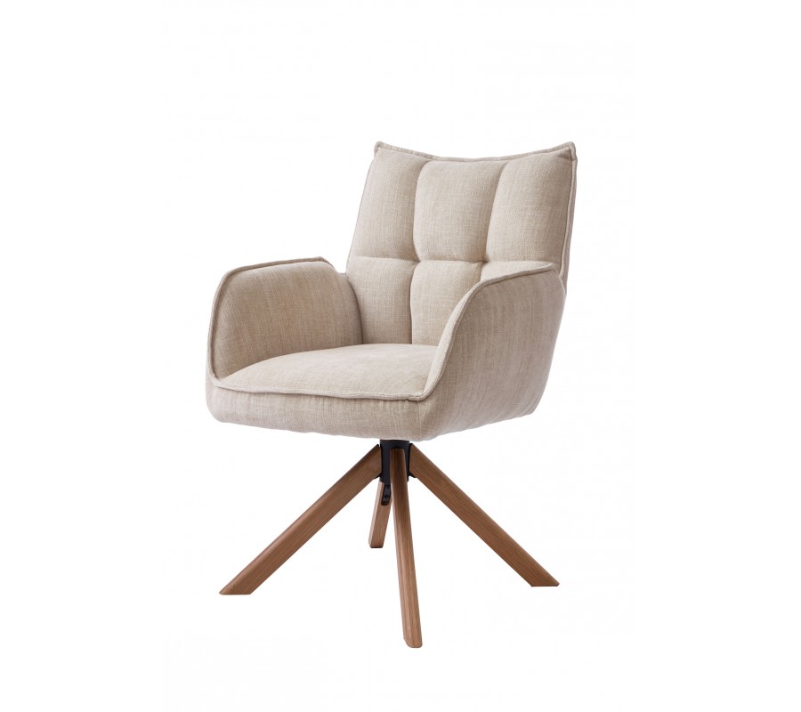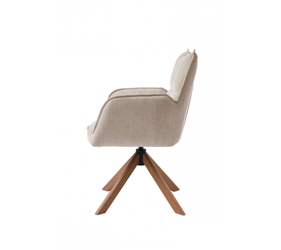 Škandinávska béžová otočná jedálenská stolička Laerke s prešívaným ženilkovým poťahom a hnedými dubovými nohami 59 cm