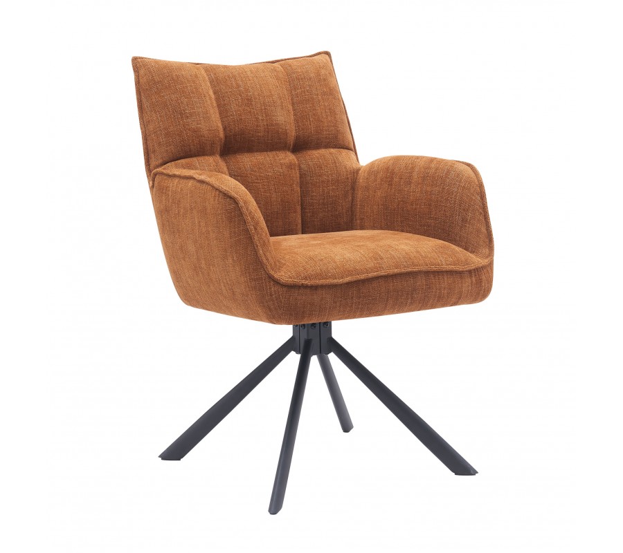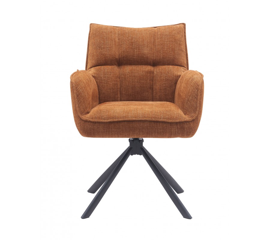 Škandinávska otočná jedálenská stolička Laerke s hrdzavo oranžovým ženilkovým poťahom a čiernou kovovou podstavou 59 cm
