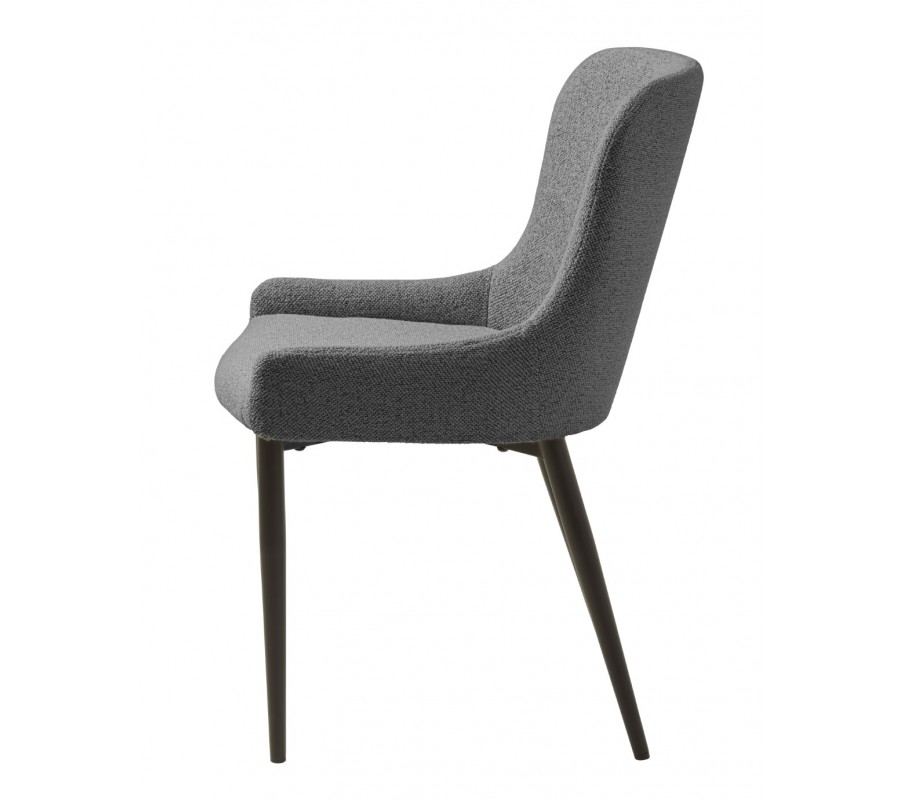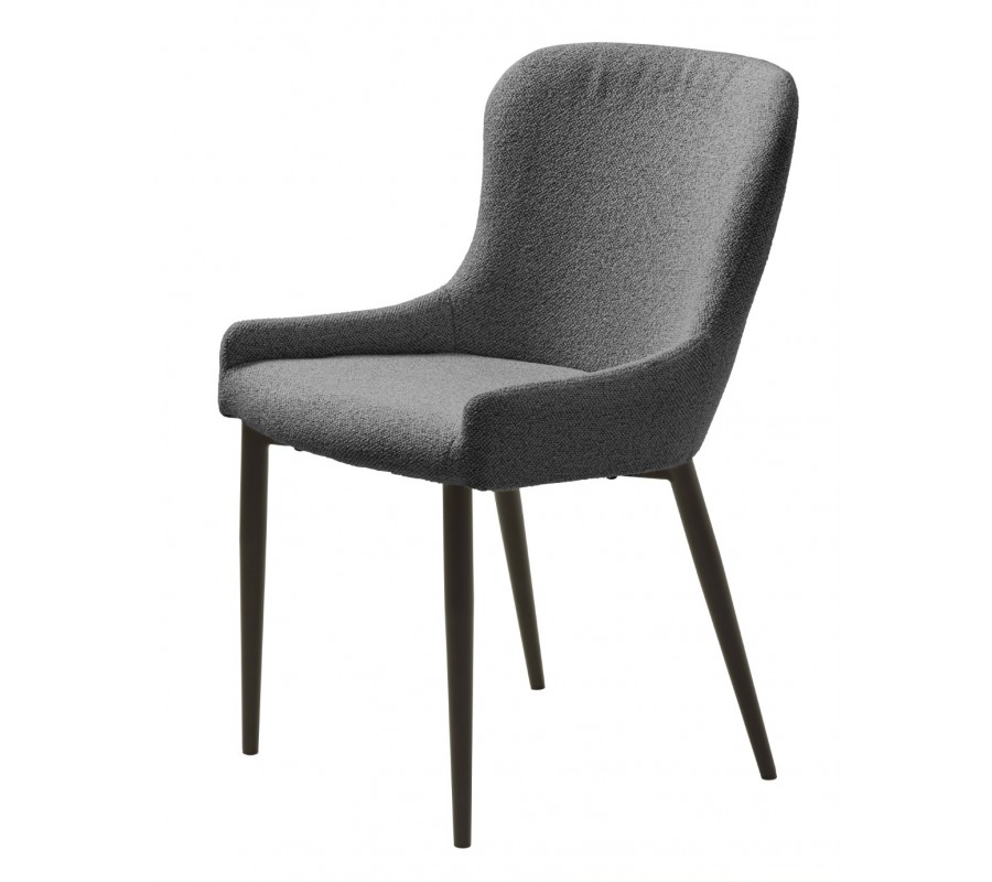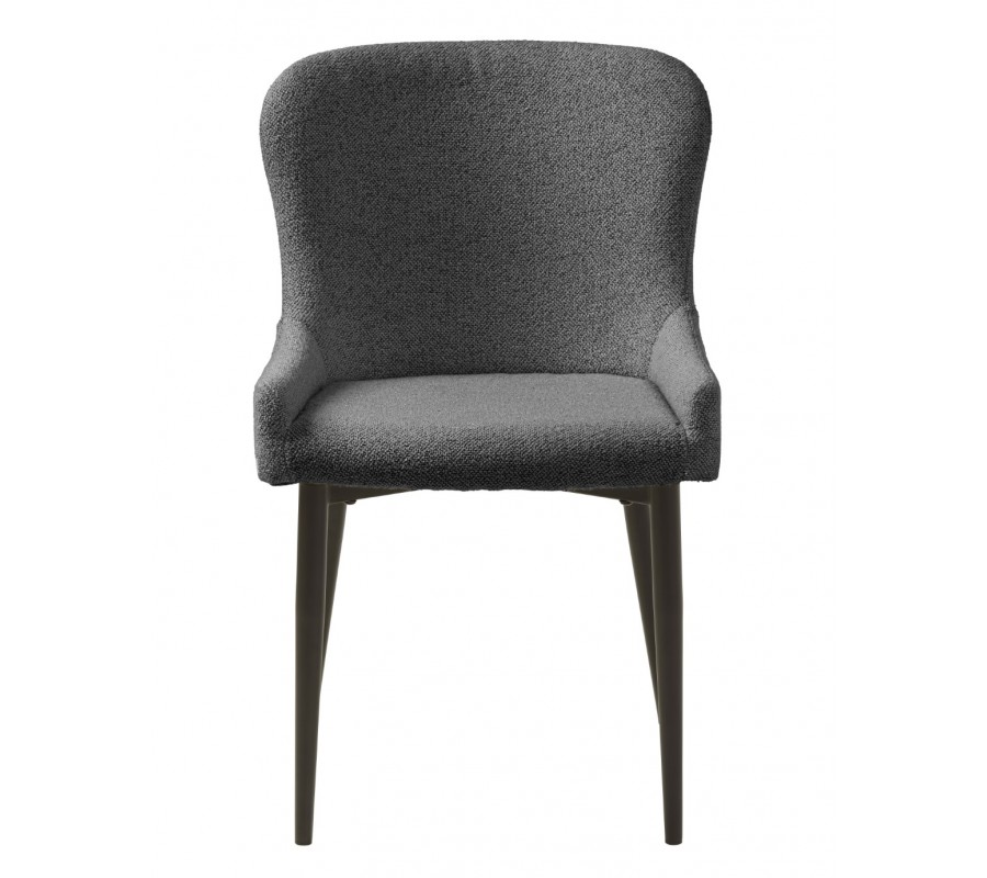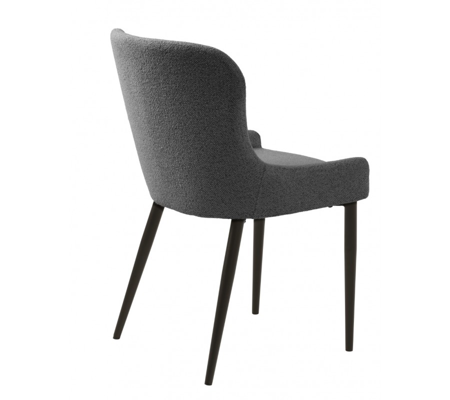 Moderná buklé jedálenská stolička Shariq s tmavým sivým poťahom a čiernymi kovovými nohami 82 cm