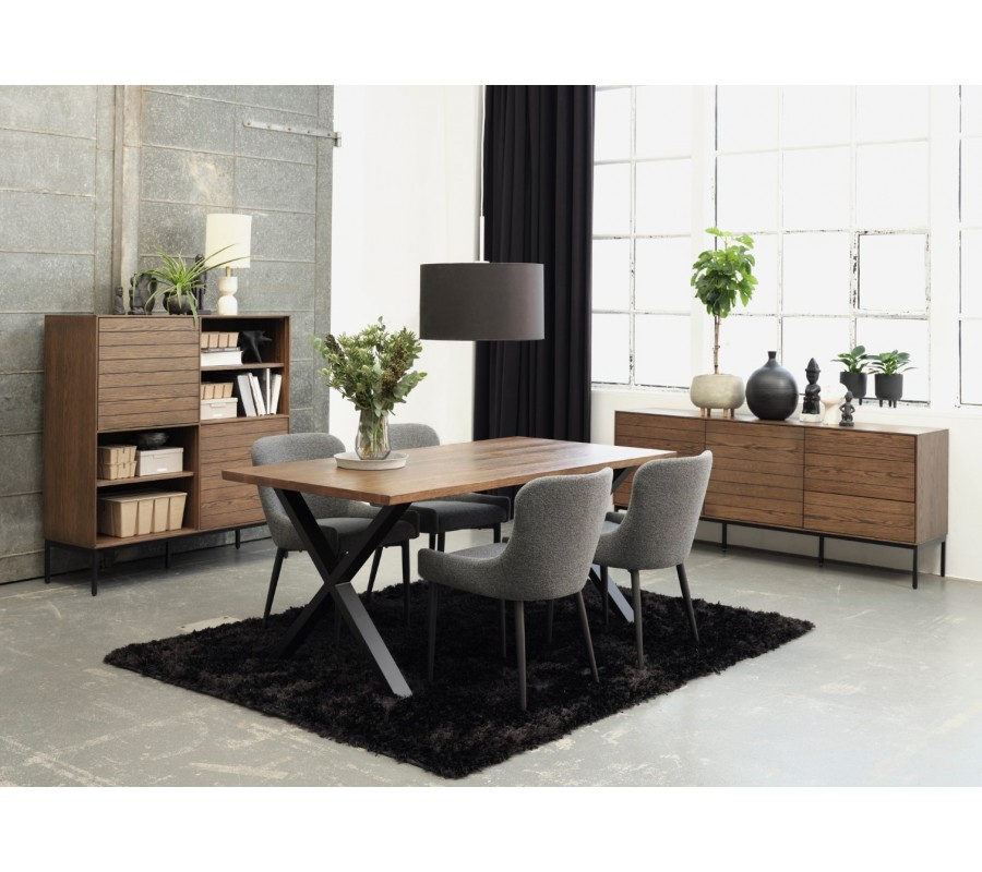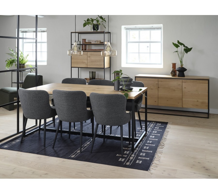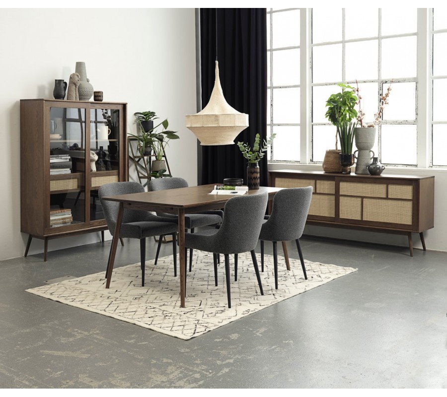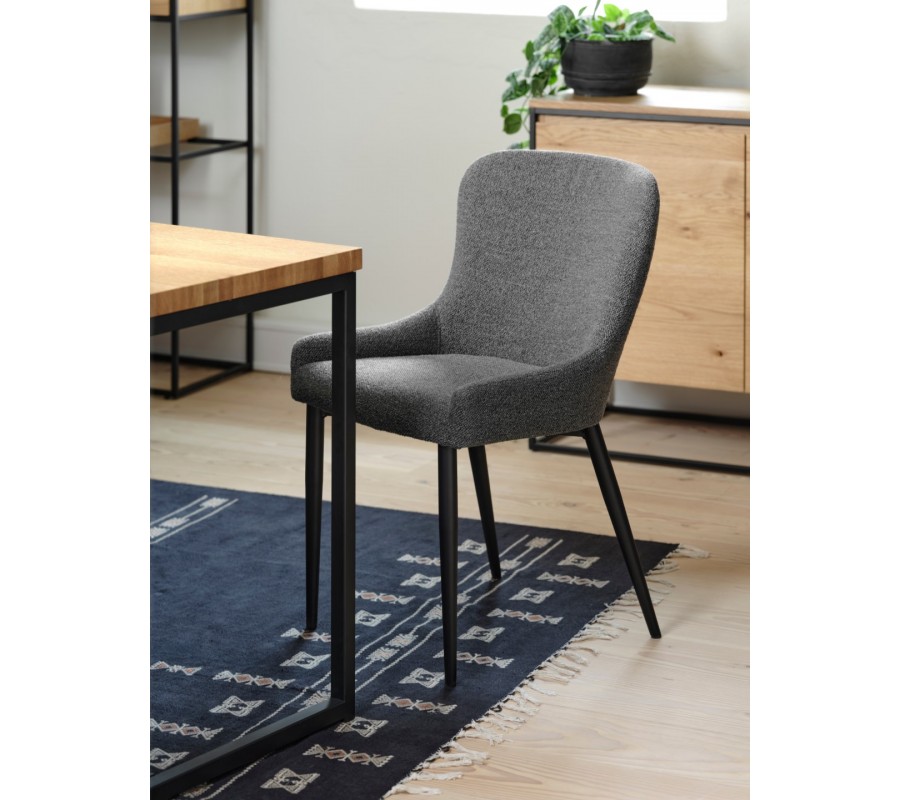 Jedálenská stolička Shariq spája moderný dizajn s eleganciou buklé. Prevedenie v tmavých tónoch pôsobí sofistikovane a ľahko sa kombinuje s ďalším nábytkom.