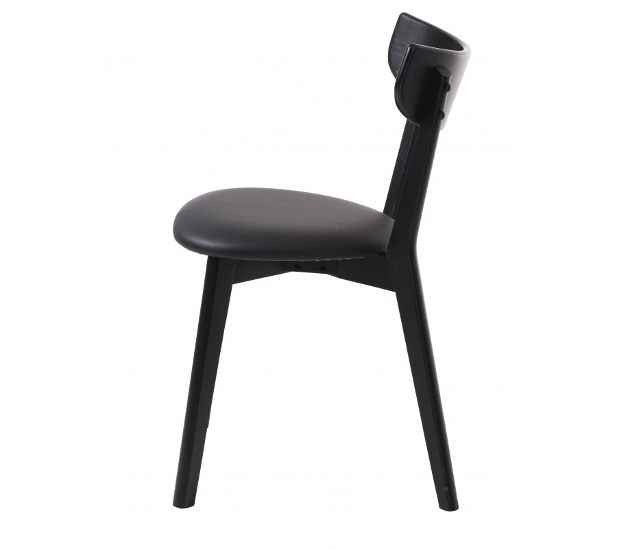 Stolička má pevnú konštrukciu, vyrobenú z dubového dreva. Nožičky majú dynamický plochý profil a zošikmené línie, čo zaručuje nábytku výbornú stabilitu. Sú prepojené výstuhou v tvare X, na ktorej je položené sedadlo s poťahom z ekokože. Má elegantnú zaoblenú siluetu, so zadnou časťou tvarovanou do oblúka a prednou do dvoch rohov.