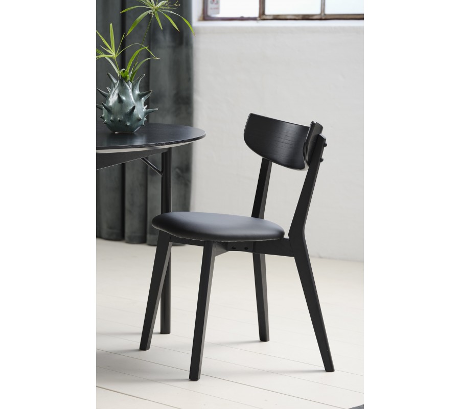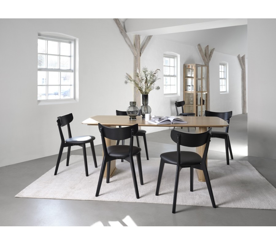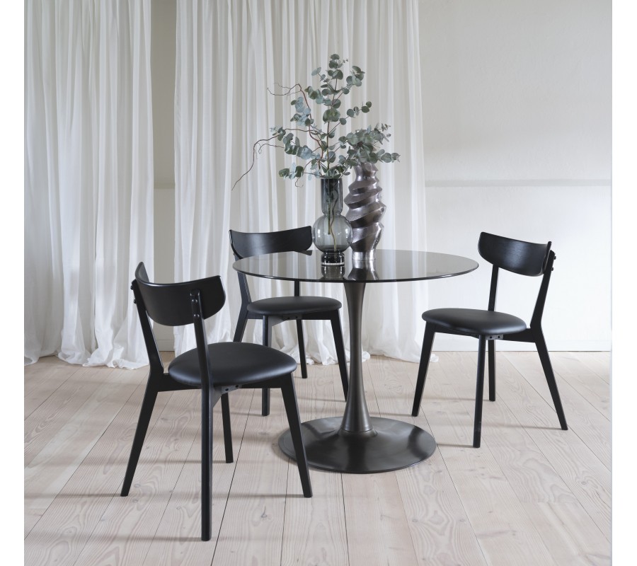 Čierne lakovanie necháva viditeľnú pravidelnú štruktúru dubového dreva, ktorá vytvára prírodný akcent, výborne korešpondujúci s čiernou ekokožou na sedadle. Toto prevedenie pôsobí elegantne a ľahko sa kombinuje s ďalším nábytkom.