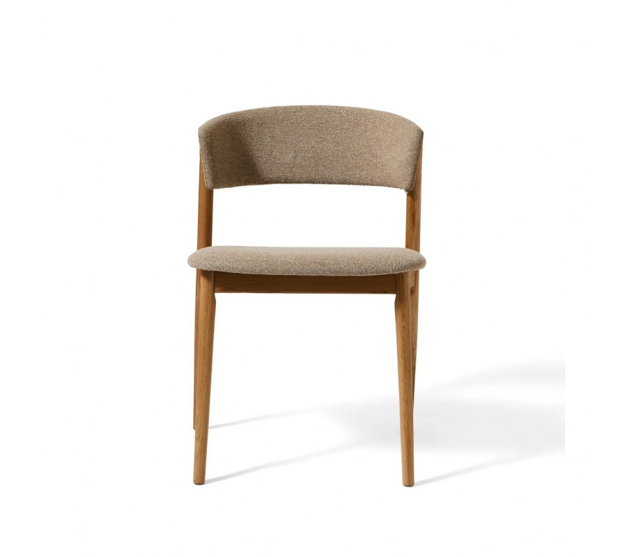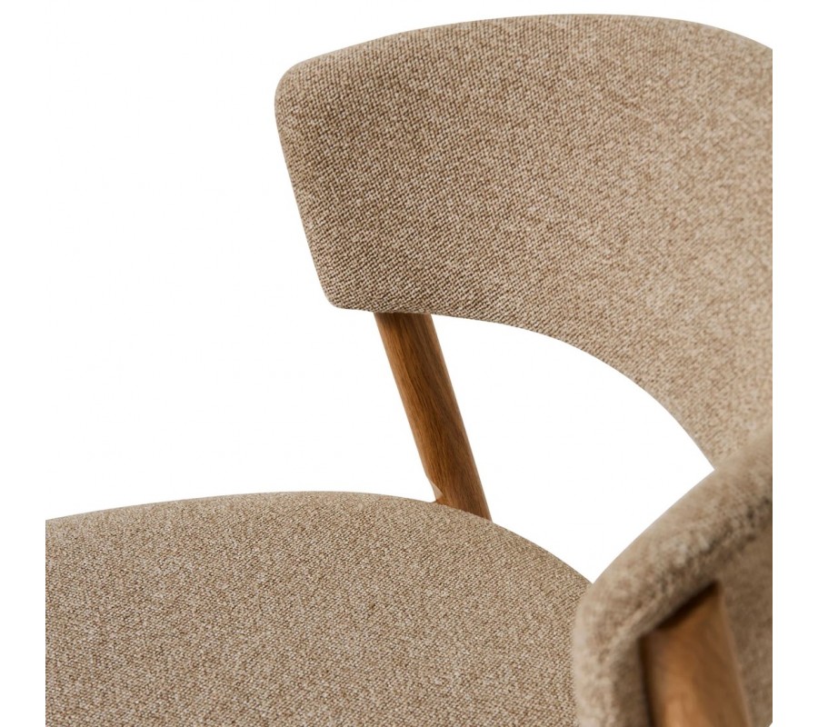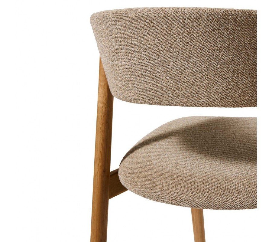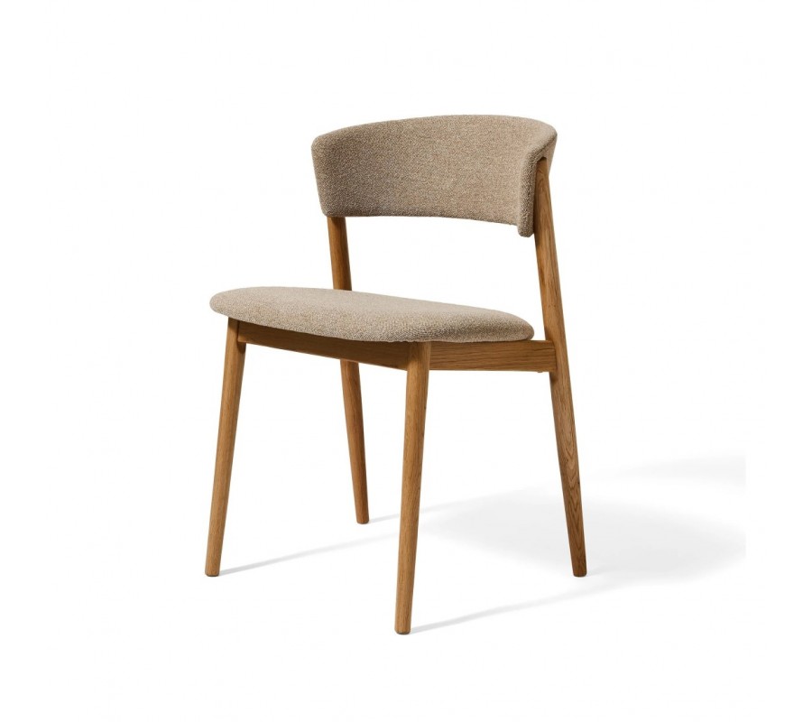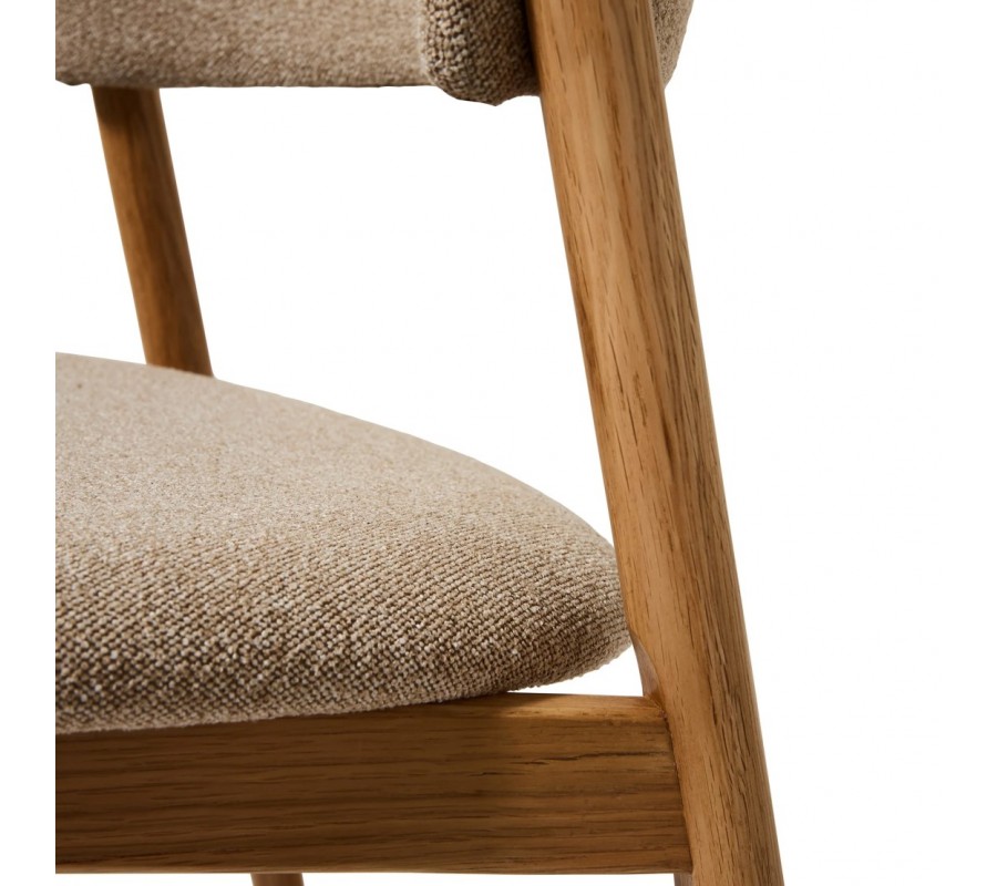 Konštrukcia je vyrobená z dubového dreva. Povrchová úprava zachováva prírodnú svetlú hnedú farbu necháva vyniknúť prirodzenú kresbu letokruhov, čím podčiarkuje škandinávsky štýl. Sedadlo aj opierka sú čalúnené béžovým poťahom z mikrovlákna s melírovaným efektom, ktorý je odolný a vhodný aj na každodenné intenzívne používanie. Jemný ženilkový finiš je mäkký na dotyk a dodáva stoličke útulný charakter.