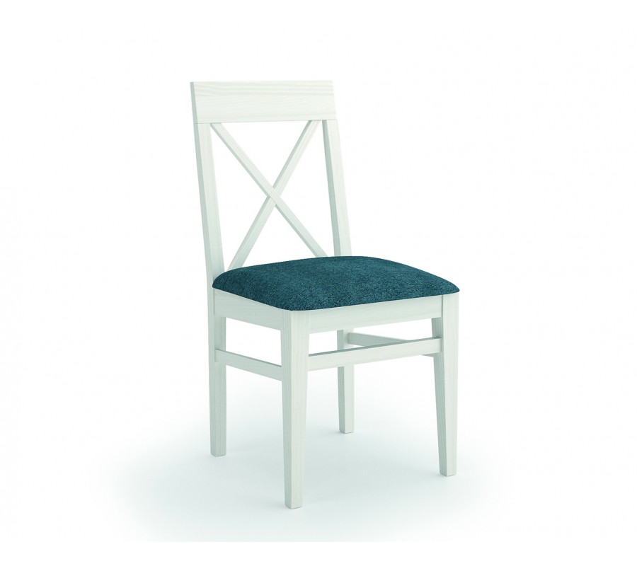 Stolička má modernú siluetu, v ktorej dominujú rovné línie a geometrickosť tvarov. Čalúnené sedadlo s textilným poťahom má obdĺžnikový tvar a zaručí komfortné sedenie. Je položené na drevenom ráme, z ktorého vychádzajú štyri hranaté nožičky. Zadný pár plynule prechádza do bočných strán opierky a vo vrchnej časti je ukončený širšou obdĺžnikovou doskou. Opierka je mierne zahnutá dozadu a pri sedení sa tak dobre prispôsobí telu. Vypĺňa ju výstuha v tvare X, ktorá v kombinácii so zúženou spodnou časťou nožičiek a lineárnymi spojnicami medzi nimi na bočných a predných stranách dodáva modernej forme jemne vidiecky výraz.