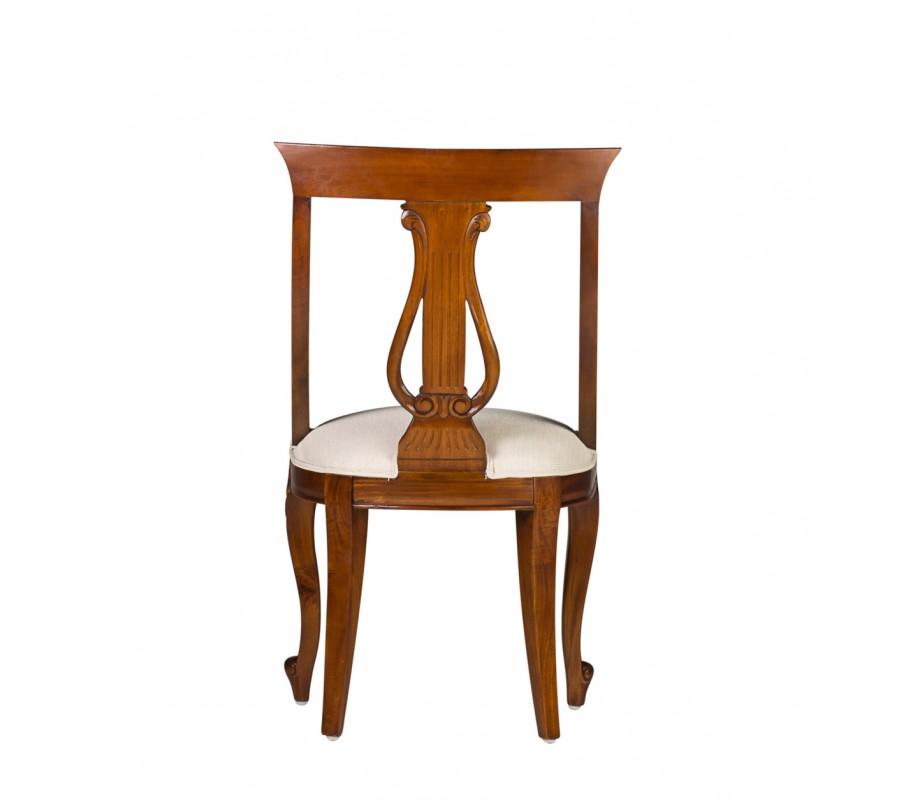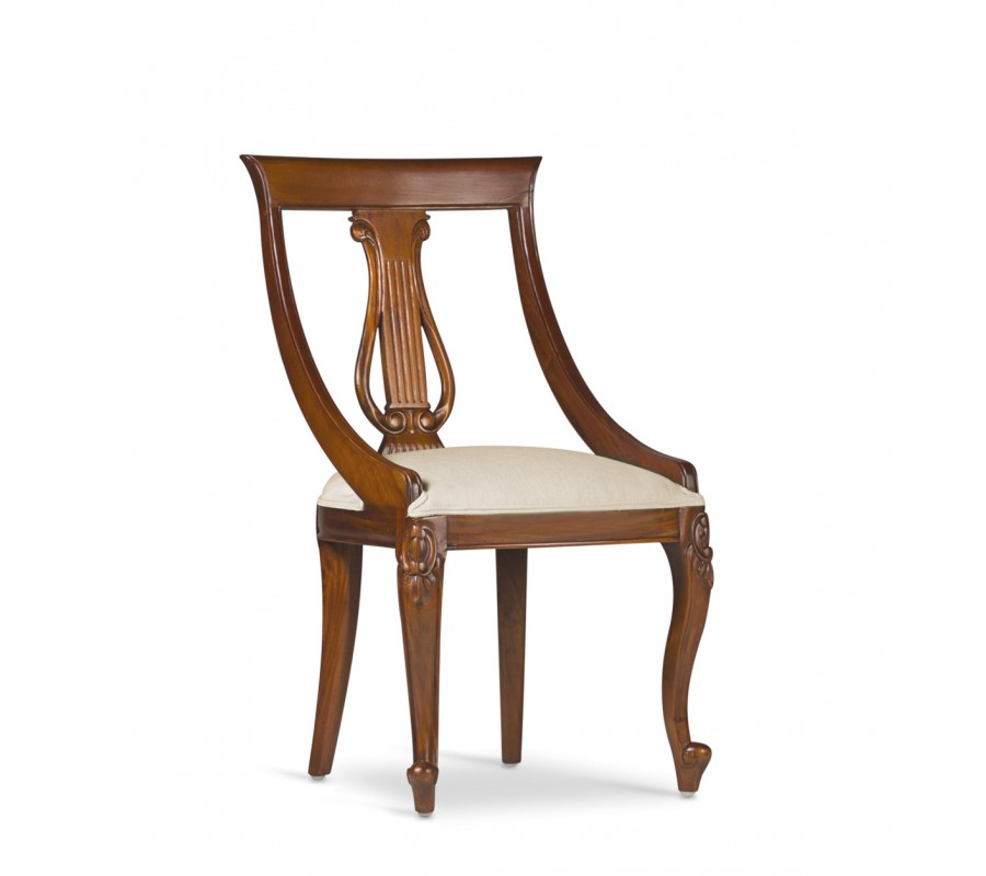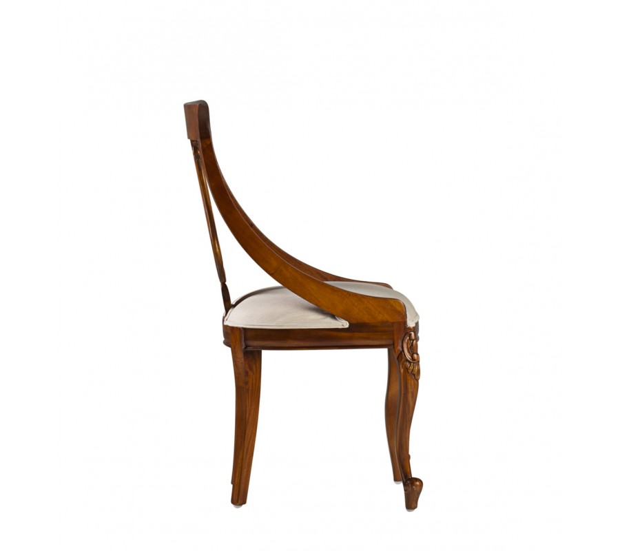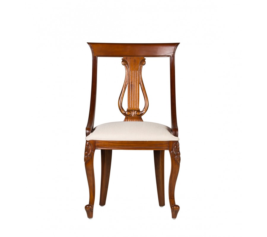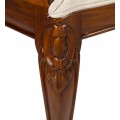 Luxusná stolička M-Vintage je kúskom vhodných do luxusných, koloniálne či vintage ladených jedální, obývačiek či konferenčných miestností. Na prvý pohľad zaujme najmä vďaka nádhernému vyrezávaniu na operadle a nožičkách, ktoré vo vašich priestoroch navodia nádych starých čias. Kvalitné masívne mahagónové drevo je doplnené o kontrastné čalúnenie v béžovej farbe, ktoré sa postará o vaše pohodlie a komfort. Stoličky M-Vintage nádherne zapadnú do svetlých priestorov s bielymi stenami v kombinácii s masívnym nábytkom a jemnými prírodnými čiflorálnymi dekoráciami.