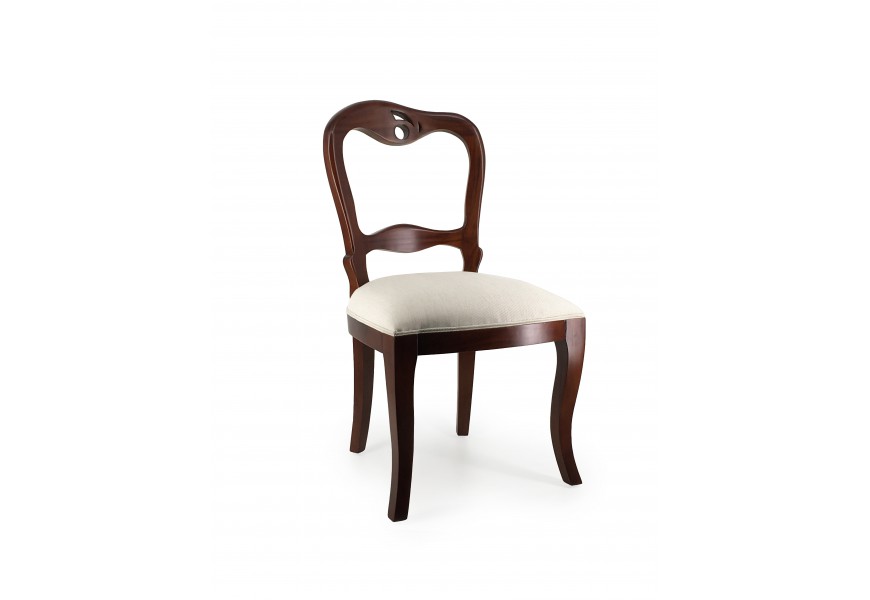 Koloniálna jedálenská stolička M-VINTAGE z masívneho mahagónového dreva s béžovým čalúnením 93cm