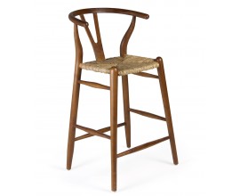 Štýlová koloniálna hnedá masívna teaková jedálenská stolička Gaffelboen s pandanovým výpletom 78 cm
