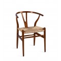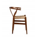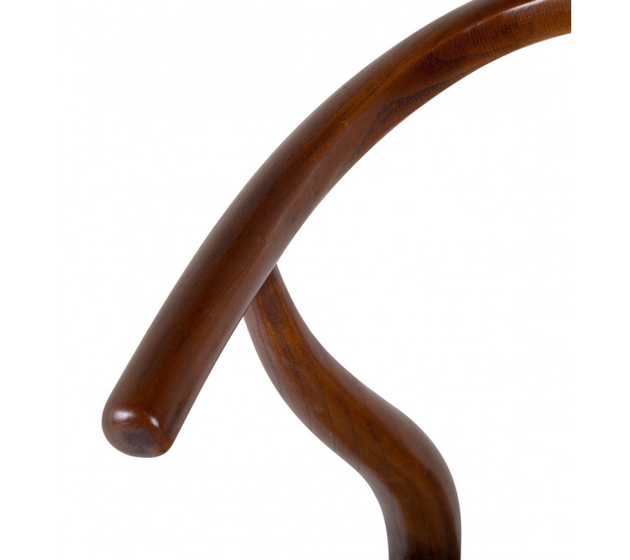 Tvar stoličky je výnimočný svojou zaoblenou opierkou na chrbát v tvare písmena U, ktorá plynule prechádza do bočných opierok na ruky. Tento tvar je typický pre tzv. wishbone dizajn, inšpirovaný severským štýlom. Bočné opierky sú podopreté dvomi elegantne zvlnenými tyčami, ktoré sú súčasťou zadných nožičiek. Stredová rozdvojená tyč vystužuje operadlo a zároveň dotvára jemne dekoratívny efekt. Všetky prechody a spoje sú mäkko opracované, čo zvyšuje komfort aj estetickú hodnotu.