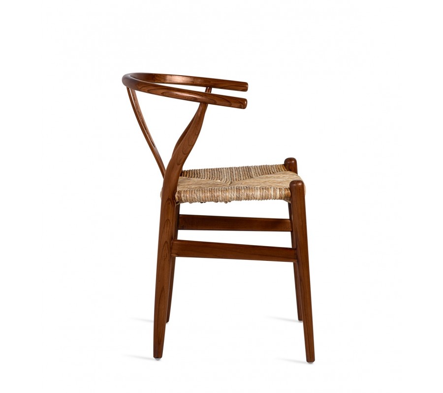 Jedálenská stolička Gaffelboen je ukážkou precízne spracovaného koloniálneho dizajnu s dôrazom na prírodné materiály, jemné krivky a remeselnú kvalitu. Konštrukcia z masívneho teakového dreva má hladký lakovaný povrch s jemným leskom, ktorý zvýrazňuje teplý hnedý odtieň a štruktúru dreva.