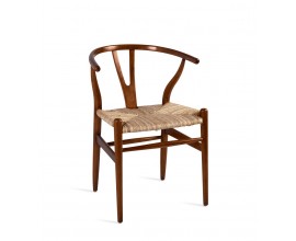 Štýlová koloniálna hnedá masívna teaková jedálenská stolička Gaffelboen s pandanovým výpletom 78 cm