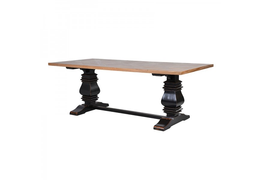 Vidiecky luxusný jedálensky stôl Karlotta svetlohnedý, čierny 220 cm
