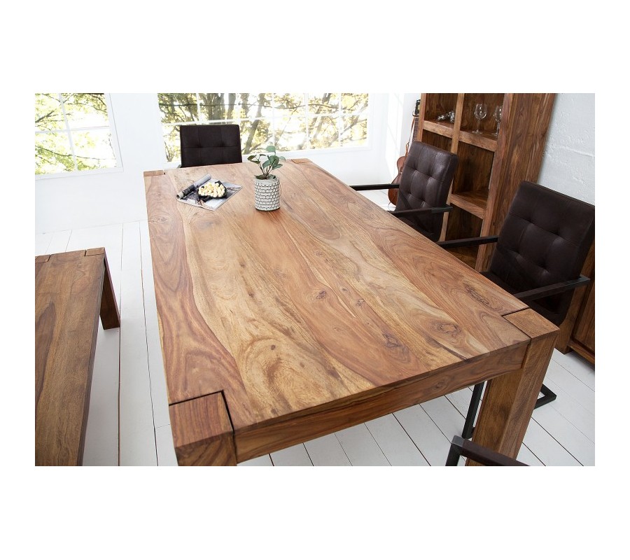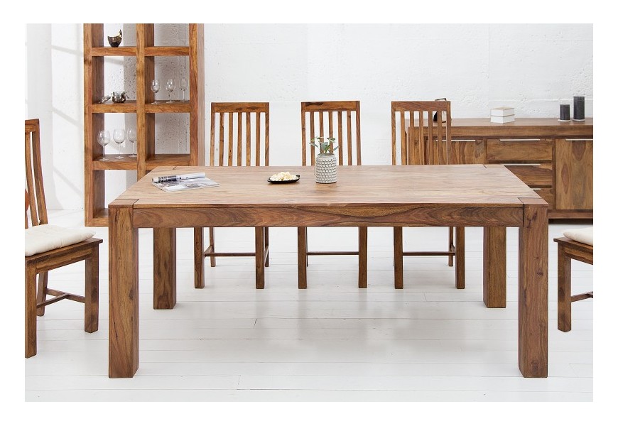 Štýlový jedálenský stôl Makassar 200cm bude predstavovať neprehliadnuteľný prvok miestnosti, ktorej dodá nádych prirodzených materiálov. Veľkosť celková: 200 cm x 76 cm x 100 cm (Š x v x h), nohy: 12cm x 12cm. Farba: prírodná, materiál: drevo palisander, masívne, voskované a leštené.