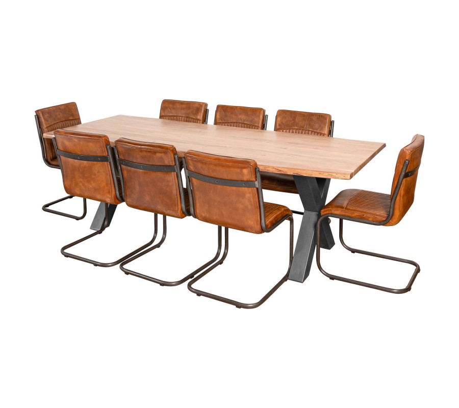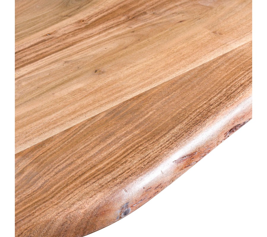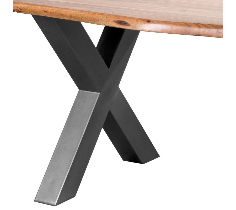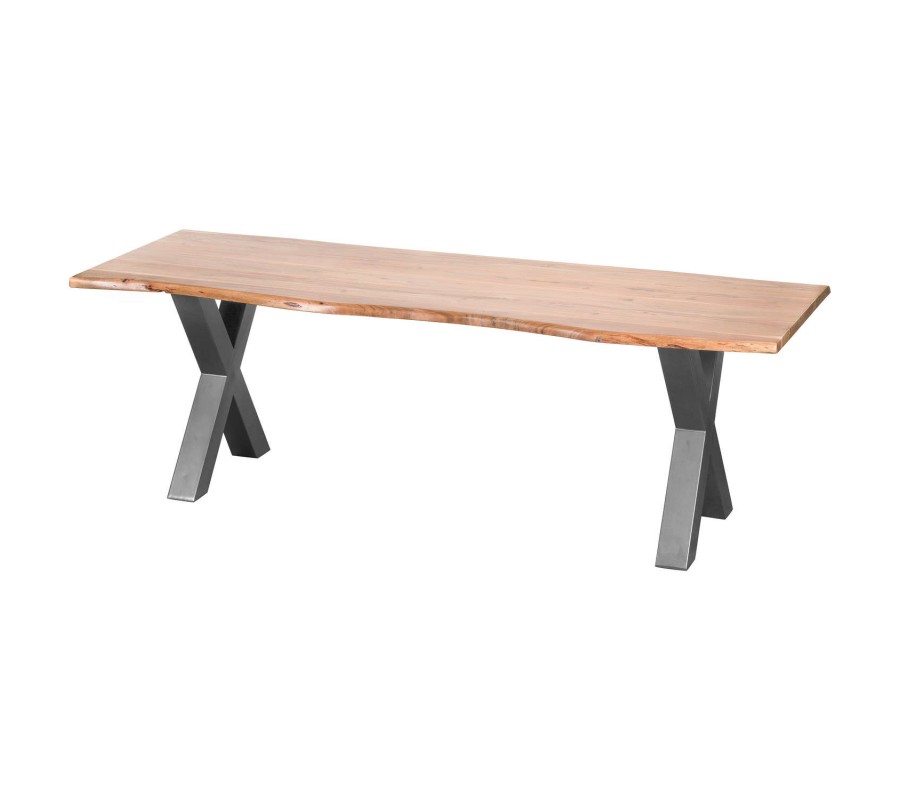 Dizajnový masívny jedálensky stôl Live Edge je vyrobený z prírodného dreveného masívu. Vhodný je na posedenie pre ôsmych ľudí. Konštrukcia je tvorená z kovových nožičiek tvaru x, ktoré zabezpečujú celkovú stabilitu stola. Vrchná doska stola má povrchovú úpravu, ktorá zachováva štruktúru dreva. Po okrajoch má nepravidelný zvlnený tvar pripomínajúci tvar kmeňa stromu. Svojou dĺžkou sa ideálne hodí do kuchyne, jedálne. Dokonalo sa kombinuje s inými prvkami v prírodných farbách a zapadá do industriálneho štýlu. Vynikajúcim doplnkom by boli rôzne kontrastné prvky na vrch stola, ktoré zvýraznia elegantnosť stola. Ide o ručnú výrobu a preto je každý kus unikátny. Celkovo pôsobí zaujímavo, jednoducho a obohatí Váš interiér.