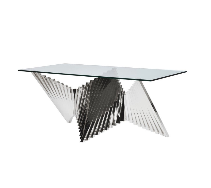 Exkluzívny jedálenský stôl Abstracta je kúskom, ktorý vynikne v každom luxusne a štýlovo zariadenom interiéri. Jeho dominantou je chrómová kovová konštrukcia prevedená v zaujímavom abstraktnom geometrickom dizajne. Jednoduchá a klasická obdĺžniková povrchová doska zo skla vyvára s výraznou podstavou zaujímavý kontrast. Stôl Abstracta sa hodí najmä do otvorenejších priestorov, preto ak máte priestrannejšiu jedáleň, tento kúsok v nej zaručene skvelo vynikne! Dá sa zaujímavo dokombinovať nie len s chrómovým nábytkom, ale napríklad i čiernymi či bielymi doplnkami.