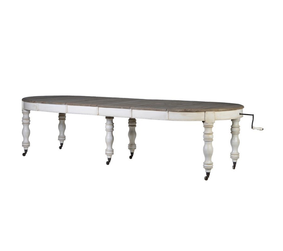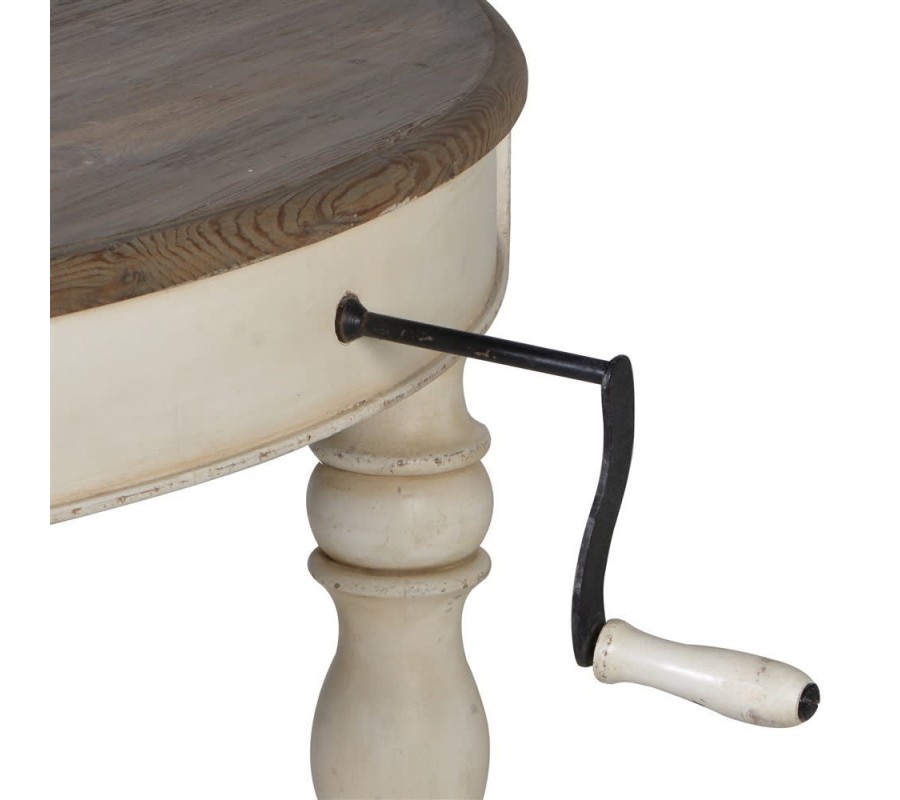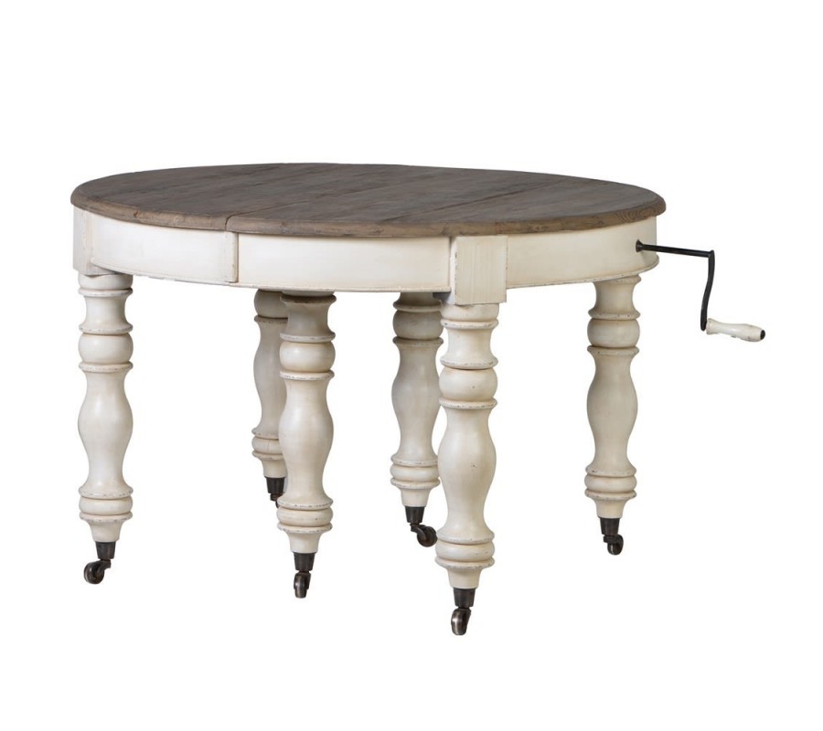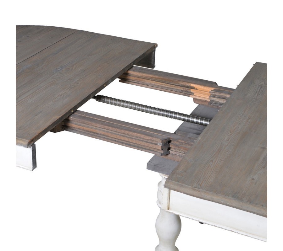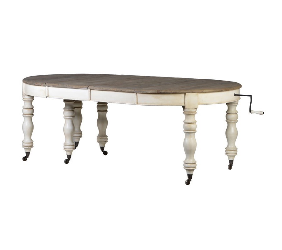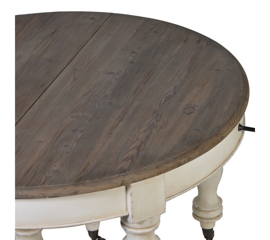 Luxusný stôl Oleandro je jedinečným kúskom, ktorý rozžiari každý klasicky ladený interiér. Vynikne najmä vďaka štýlovo vyrezávaným nohám, ktoré do vašej jedálne prinesú nádych minulosti. Okrúhla doska má možnosť rozkladania, čiže z menšieho kruhového stolíka sa môže stať väčší oválny s rozmerom 320cm. Na bezpečné rozťahovanie slúži klasická kľučka a štyri vkladacie dielce, ktorými sa dá stôl univerzálne roztiahnuť. Praktický je aj vďaka koliečkam, ktoré robia manipuláciu s ním jednoduchšou. Biela farba nožičiek je kombinovaná s tmavšou sivohnedou farbou povrchovej dosky, na ktorej tiež možno vidieť kresbu dreva. Táto zaujímavá kombinácia skvelo vynikne najmä v svetlejších interiéroch, a vďaka jej univerzálnosti sa dá ľahko kombinovať so širokou škálou farieb. Vhodný je najmä do jedální v klasickom alebo vintage vidieckom štýle.
