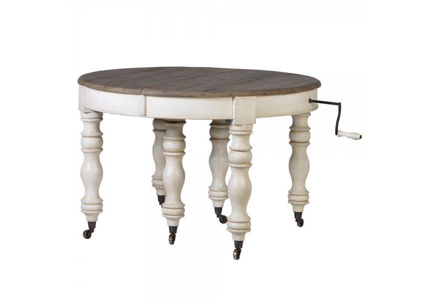 Luxusný rozkladateľný okrúhly jedálenský stôl Oleandro 125cm vo vintage štýle z dreva