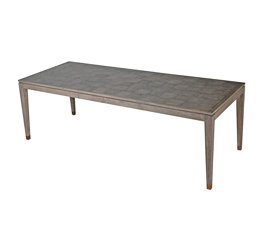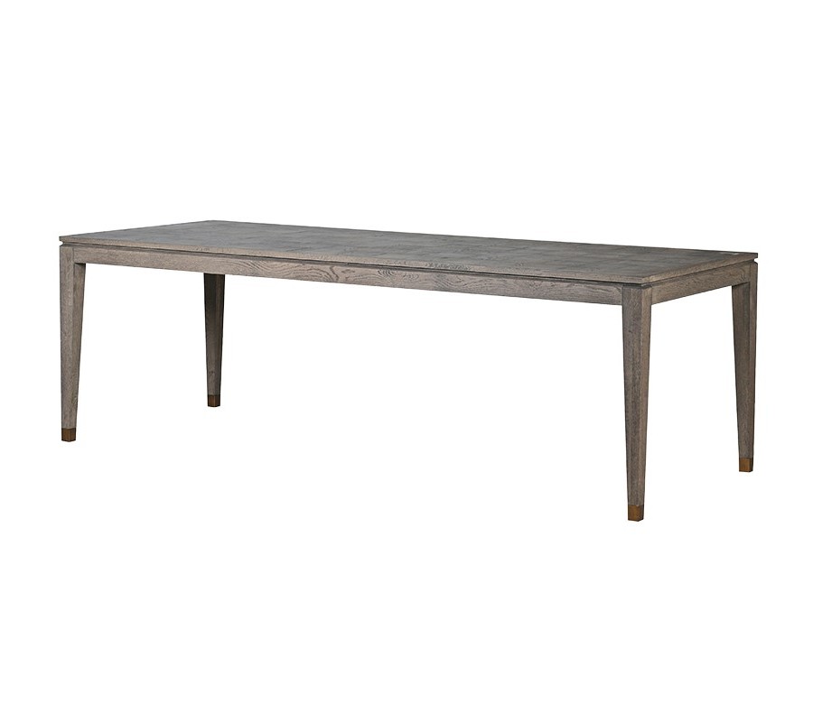 Elegantný a minimalistický jedálenský stôl z modernistickej retro kolekcie Walena sa stane pýchou Vašej jedálne. Jedinečná kombinácia sivého dubového masívu a mosadzných prvkov na spodnej strane nôh pôsobí veľmi nadčasovo. Sivé tóny dubového dreva nechávajú vďaka dômyselnej povrchovej úprave vyniknúť kresbu dreva, ktorá pomocou rozčlenenia stolu na štvorce vytvára nenapodobiteľný vzor. Luxusný jedálenský stôl Walena zapadne do jedální či kuchýň ladených v zemitých tónoch, jeho krásu taktiež vyzdvihnú výrazné dekorácie z luxusných materiálov.