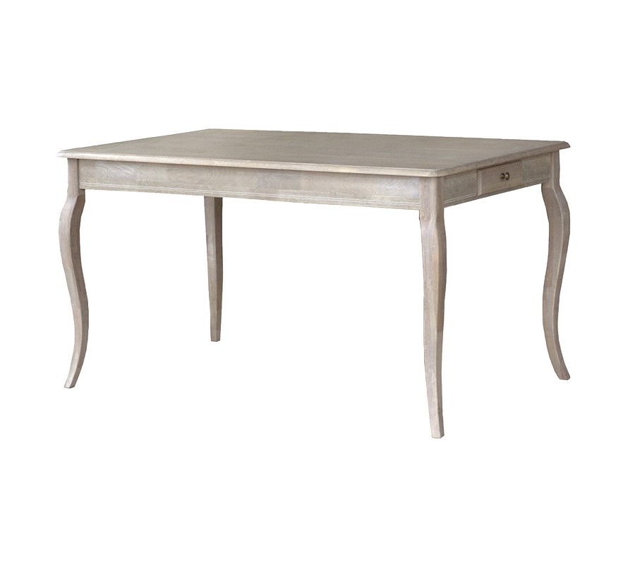 Túžite po vidieckom no zároveň luxusne pôsobiacom nábytku? Kolekcia Antic Gris je v tom prípade to pravé pre Vás. Nechajte sa očariť týmto jedinečným a pôsobivým kúskom. Jedálenský stôl s jednou zásuvkou z kolekcie Antic Gris je vyrobený z kvalitného masívneho dreva a bude Vás tak sprevádzať životom dlhé roky. Príjemná, miestami dizajnovo biela kostra zaručene rozžiari Váš domov a dodá mu nádych prirodzenej čistoty a jemnosti. Príjemné línie tohoto štýlového kúsku dopĺňajú vyrezávané vzory.