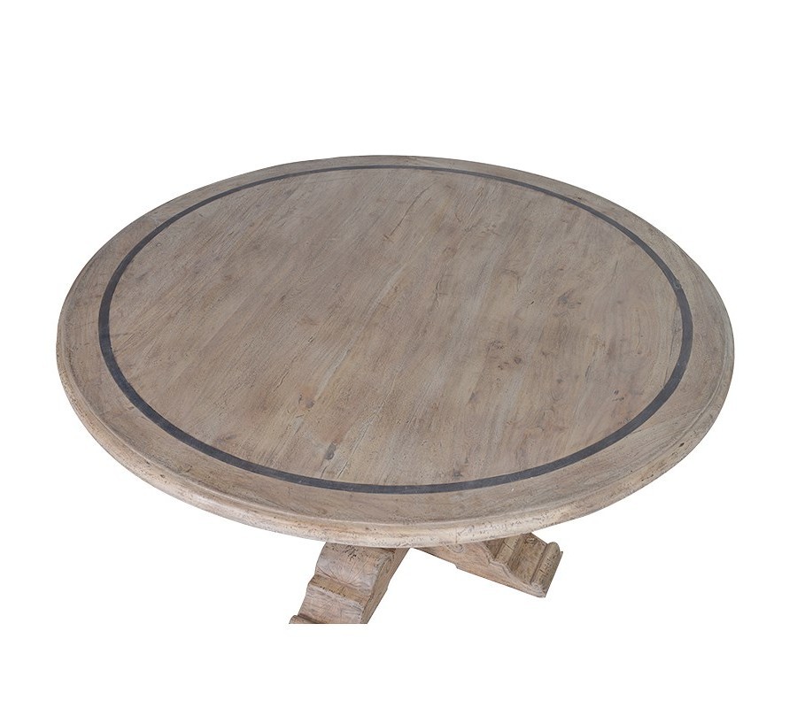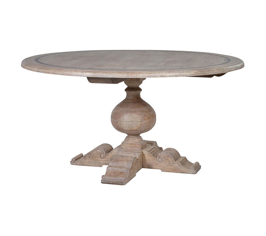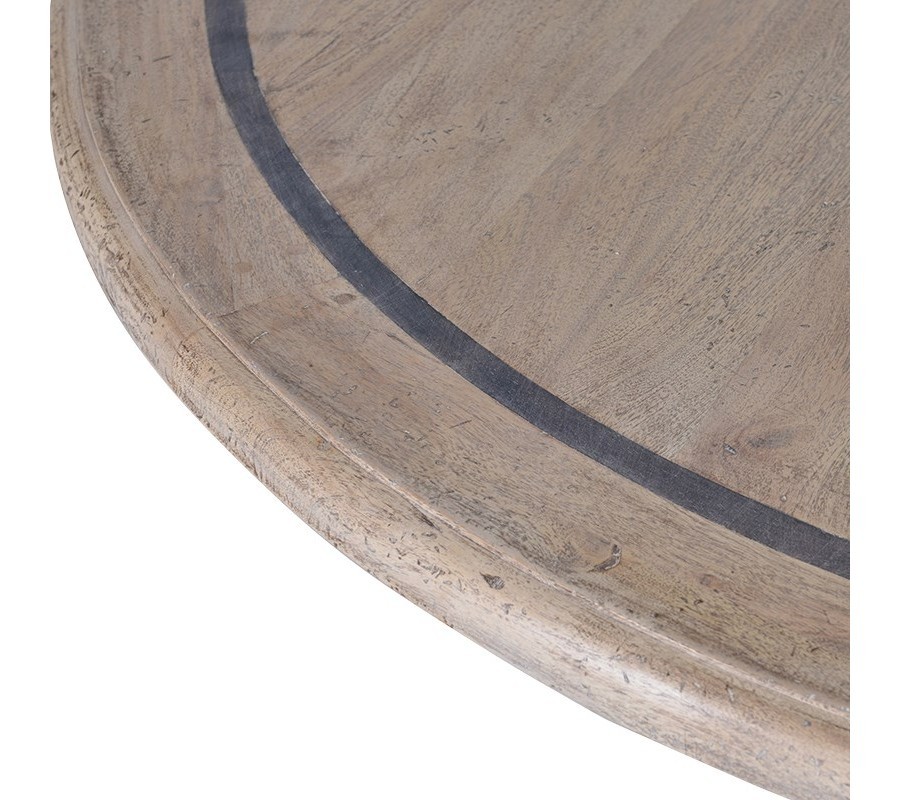 Štýlový jedálenský stôl NATURE guľatý s priemerom hornej dosky 152cm. Krásny vintage povrch tohto nábytku a vyrezávané motívy ho tvoria jedinečným a neprehliadnuteľným. Je vyrobený z masívu akácie, ktorý je typický olivovo až sivohnedým odtieňom.