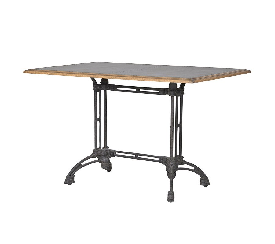 Industriálny obdĺžnikový jedálenský stôl Wes s čiernou kovovou vrchnou doskou s dubovým rámom 120cm
