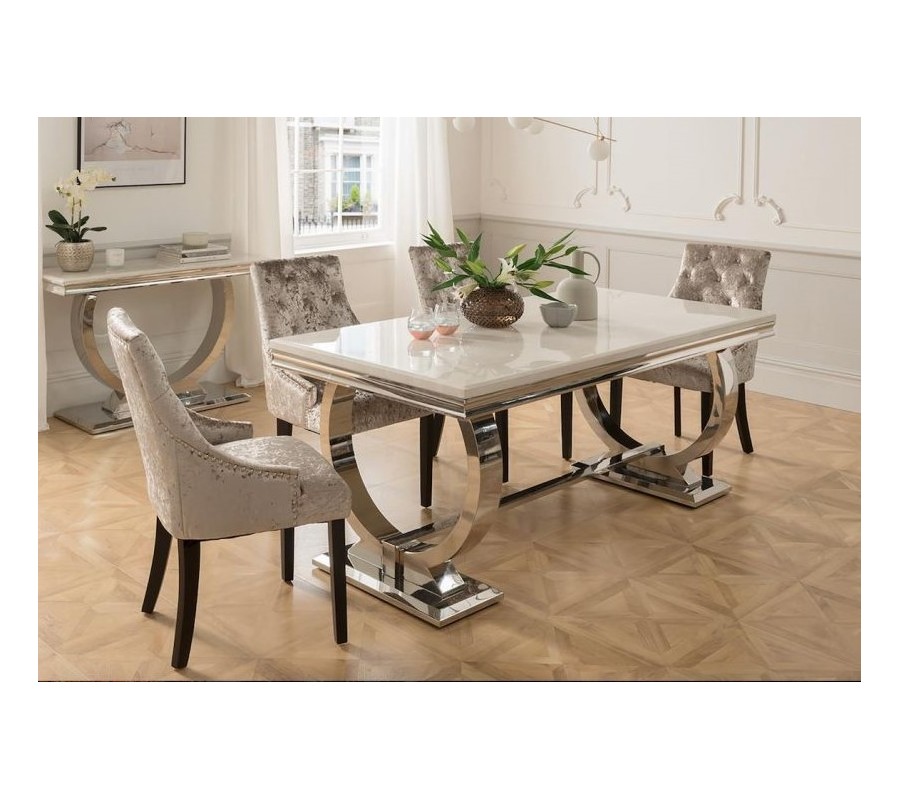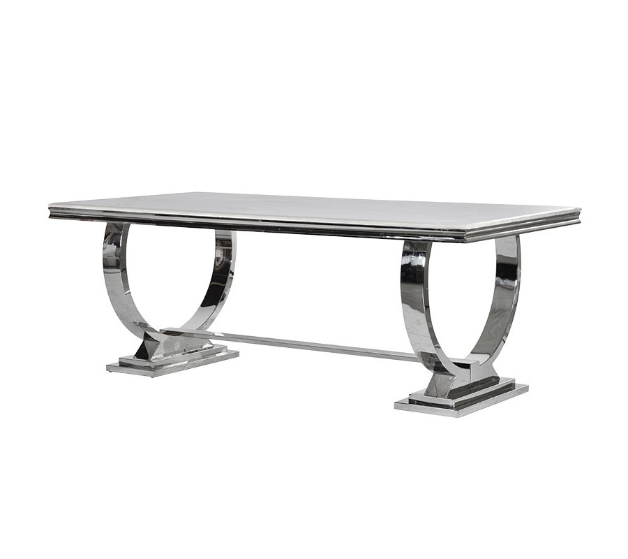 Art-deco chrómový jedálenský stôl Shantay s mramorovou doskou a oblými nožičkami 200cm