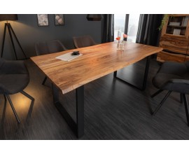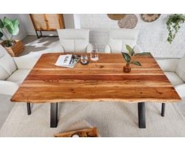 Luxusný jedálenský stôl Star z dreva mindi v prírodnej hnedej farbe štvorcového tvaru 90cm