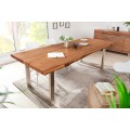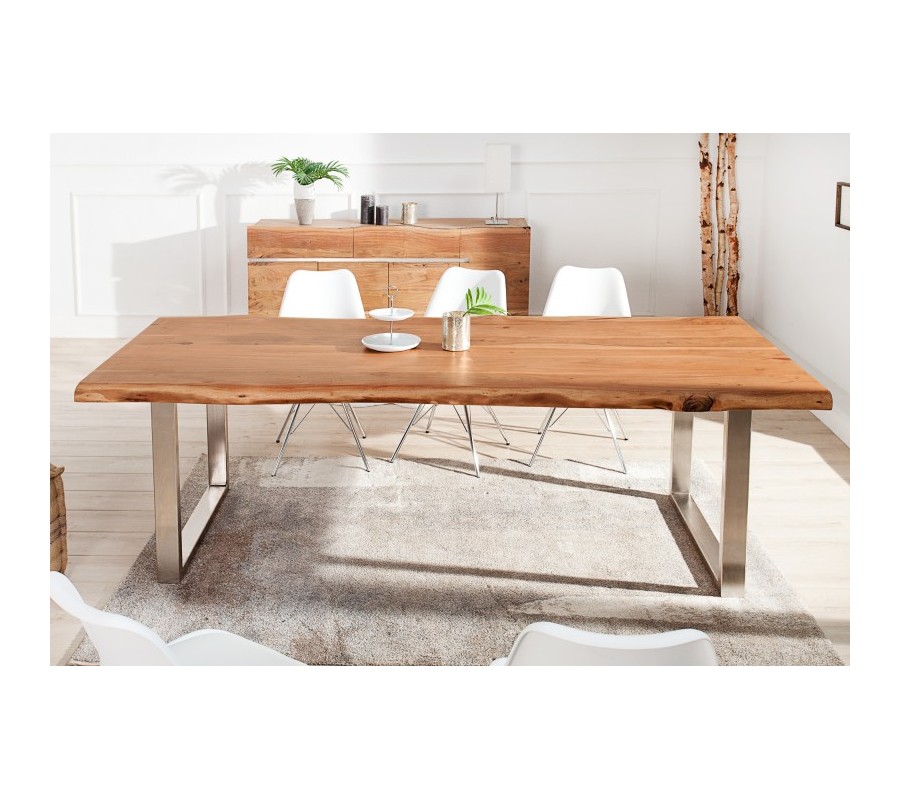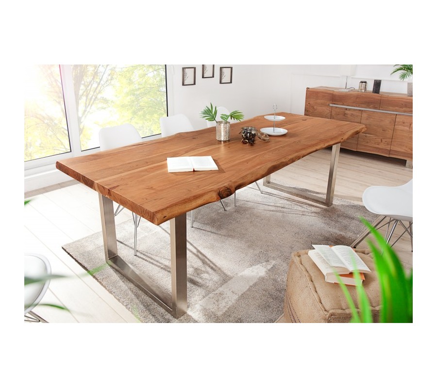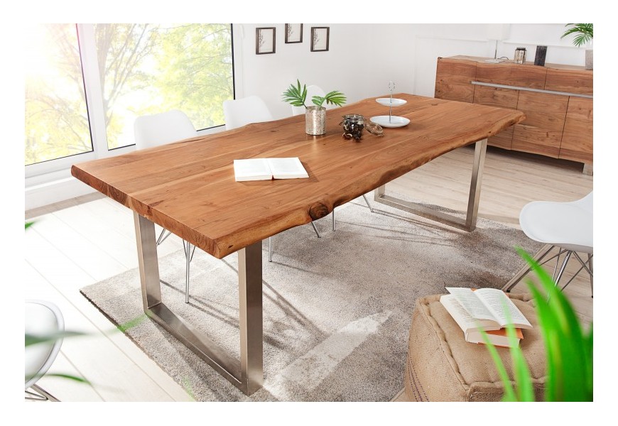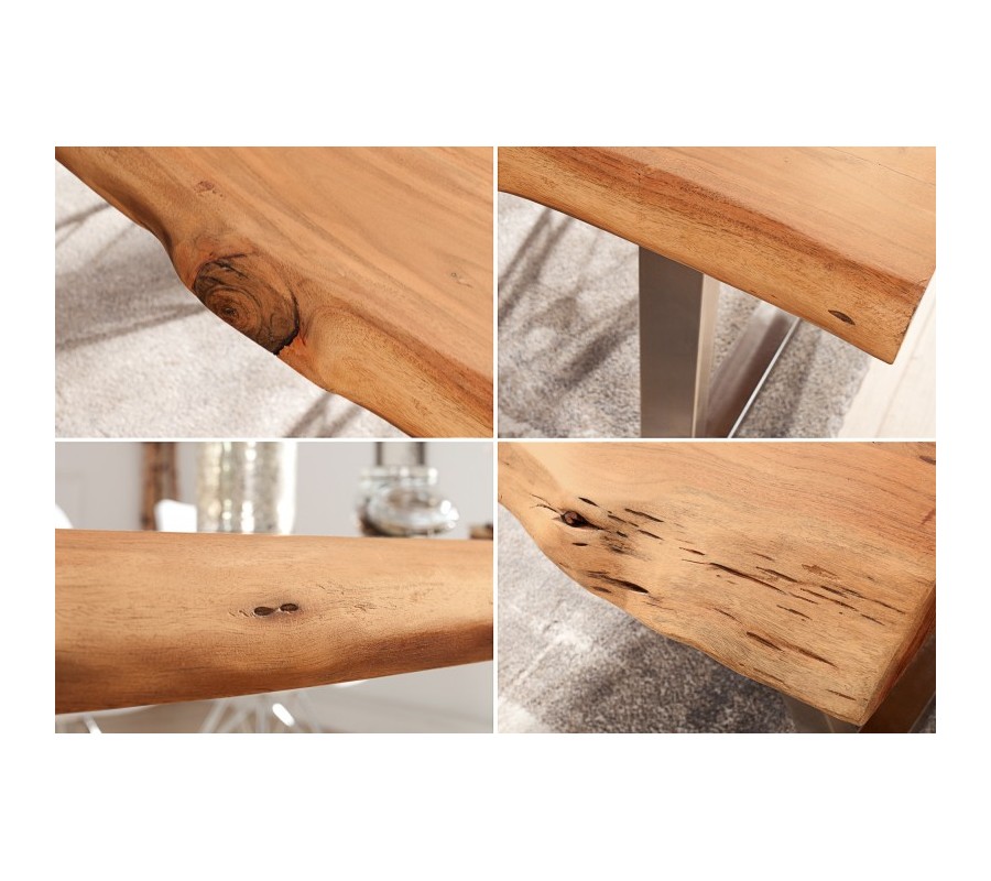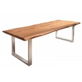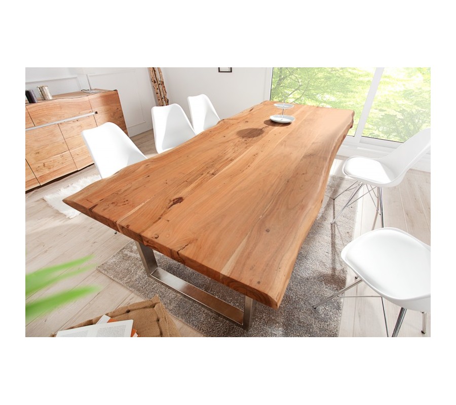 Štýlová jedálenská doska Mammut vás zaujme najmä svojím elegantným a dizajnovým prevedením. Je vyrobená z masívneho akáciového dreva, ktoré vytvára nádherný prírodný dojem. Na povrchu taktiež možno vidieť zaujímavú kresbu dreva. Dosku možno kombinovať s vhodnou kovovou konštrukciou z našej kolekcie Mammut a vytvoriť tak unikátny kúsok v industriálnom štýle, ktorý bude vo vašej jedálni zaručene dominovať a spríjemní vám chvíle stolovania. Odporúčame taktiež kombináciu s masívnym nábytkom a doplnkami v naturálnom kolorite.