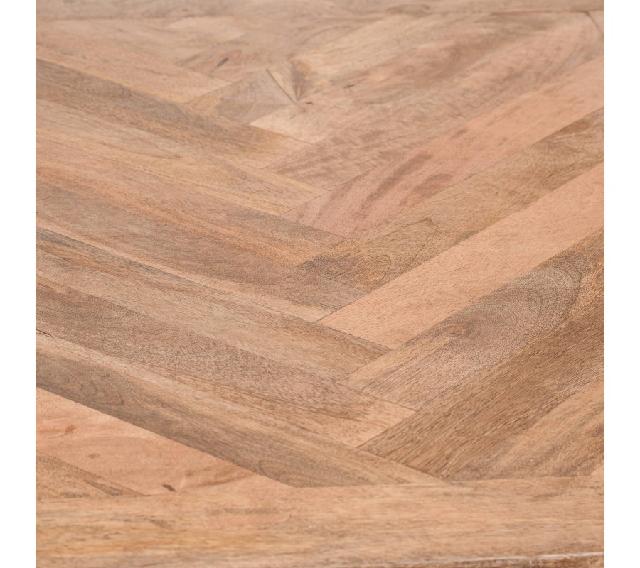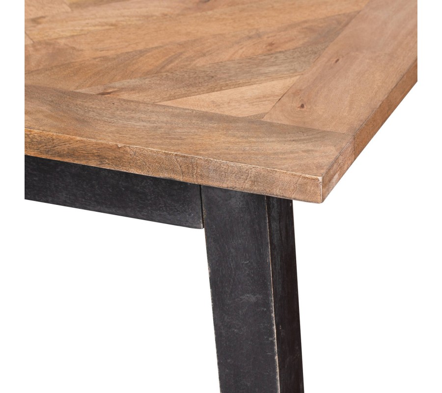 Vkusný jedálenksý stôl Nyakim z masívneho dreva je nádherným predstaviteľom industriálneho štýlu s príjemným dôrazom na jeho minimalizmus. Dizajnová kombinácia dreva povrchovej dosky v jeho naturálnych odtieňoch a nôh stola v tmavom prevedení pôsobí veľmi nadčasovo a príjemne jednoducho zároveň, čo z jedálenského stola Nyakim robí naozaj veľmi ľahko zladiteľný kúsok, ktorý do Vášho interiéru zaručene s ľahkosťou zapadne. Povrchová doska o dĺžke dvoch metrov, za ktorú sa zaručene zmestí aspoň osem až desať ľudí, sa pýši príjemným vzorom tvoreným ukladaním jednotlivých dosiek dreva s dbaním na smerovanie dyhy.