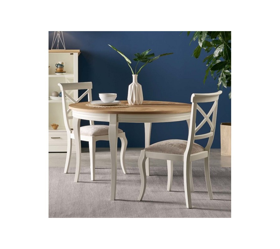V prevedení jedinečného jedálenského stolíka Tira v provensálskom štýle dominujú nežné línie inšpirované prírodou, ktoré v kombinácii s nádhernou kresbou dreva vrchnej dosky pôsobia naozaj veľmi vkusne a nežne. Jedálenský stôl Tira  je dômyselne vyrobený z kvalitného masívneho borovicového dreva a disponuje možnosťou rozloženia.