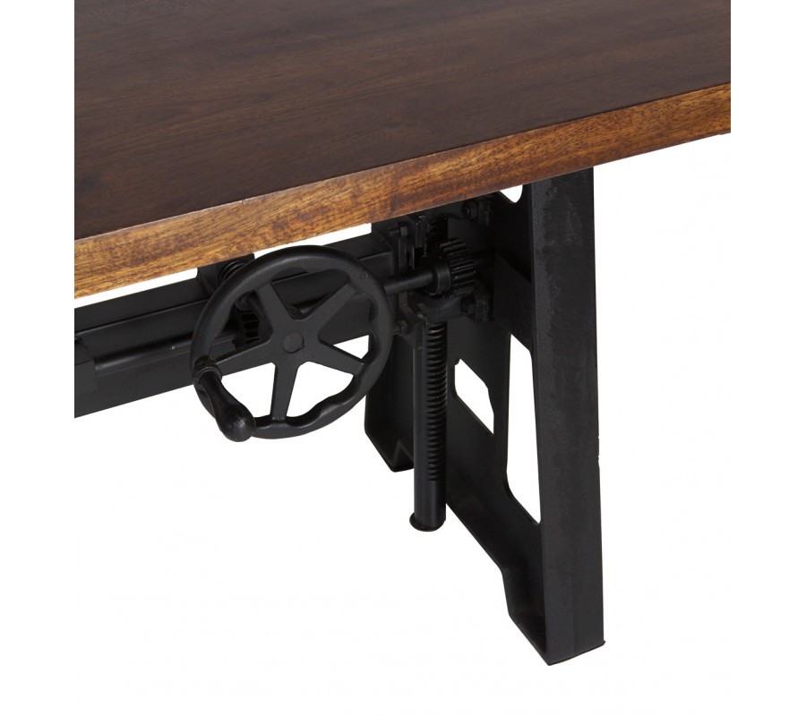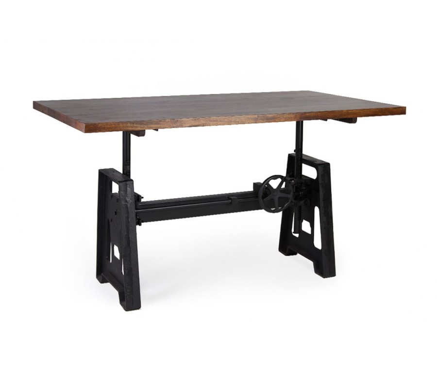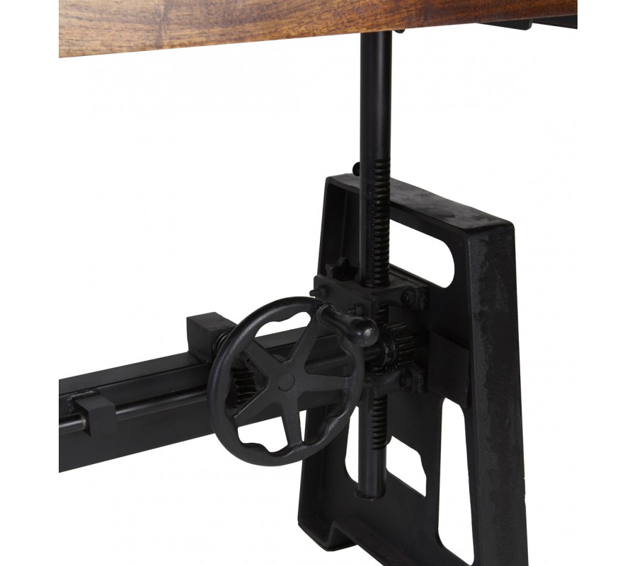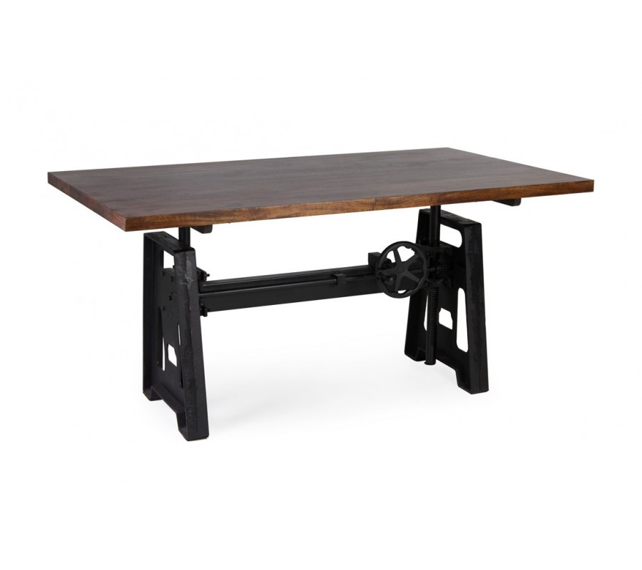 Lukratívny jedálenský stôl z dizajnovej kolekcie industriálneho nábytku Hierro je príkladným dizajnovým predstaviteľom tohoto štýlu. Dokazuje nám to najmä dômyselnou kombináciou tmavého mangového dreva a konštrukcie z čiernych železných tyčí. Masívny kúsok vás taktiež poteší svojou nastaviteľnou výškou, ktorú zabezpečuje naozaj vkusne pôsobiaca mechanika. Jedálenský stôl Hierro vynikne v alternatívne ladených jedálňach, či už sa jedná o tmavšie alebo svetlejšie priestory. Odporúčame kombináciu s masívnymi stoličkami a doplnkami v industriálnom štýle.