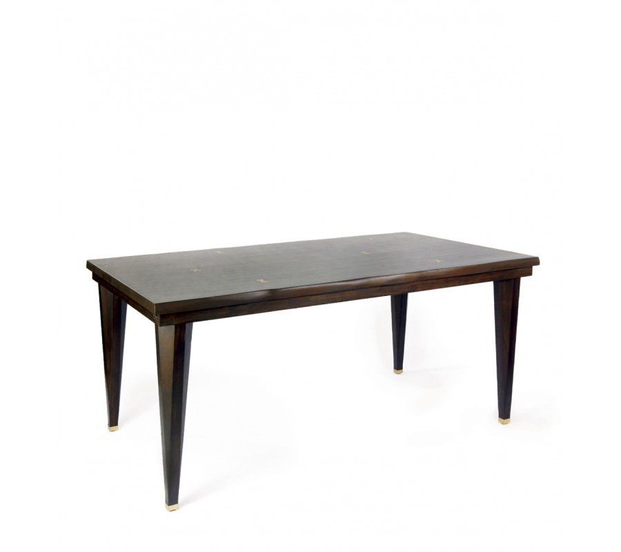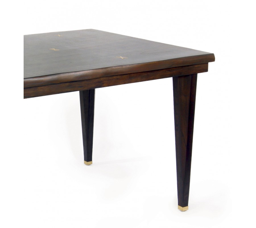 Luxusný a jedinečný predstaviteľ moderného nábytku, jednálenský stôl z kolekcie masívneho nábytku Cavite, pôsobí maximálne dizajnovo a štýlovo a zaručene poteší mnohých milovníkov interiérového dizajnu. Nábytok morený v tmavých farbách necháva vyniknúť nenapodobiteľnú kresbu dreva, ktorú dopĺňajú vkusne vložené zlaté prvky na povrchu stola ladiace so zlatom na spodných častiach nožičiek. Nechajte sa uchvátiť distingvovanou silou tohoto kúsku s nádychom koloniálenho štýlu.