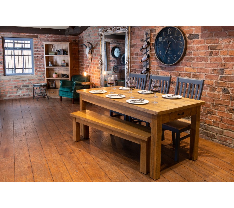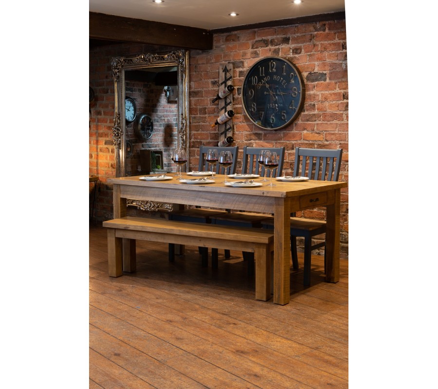Štýlový jedálenský stôl z masívu z kolekcie nábytku Loire s dĺžkou 180cm zabezpečí Vašej rodine a hosťom dostatok priestoru na spoločný obed, večeru, či zábavu pri stolových hrách. Svojim nadčasovým prevedením z masívneho dreva môže tento jedálenský stôl skvelo zapadnúť do rustikálnejších, ale aj moderných priestorov. Stôl navyše ponúka praktický odkladací priestor pre uschovanie drobností v podobe dvoch menších zásuviek.