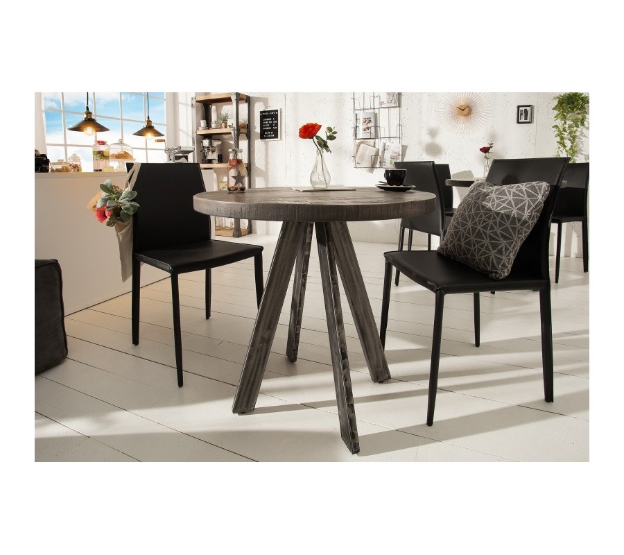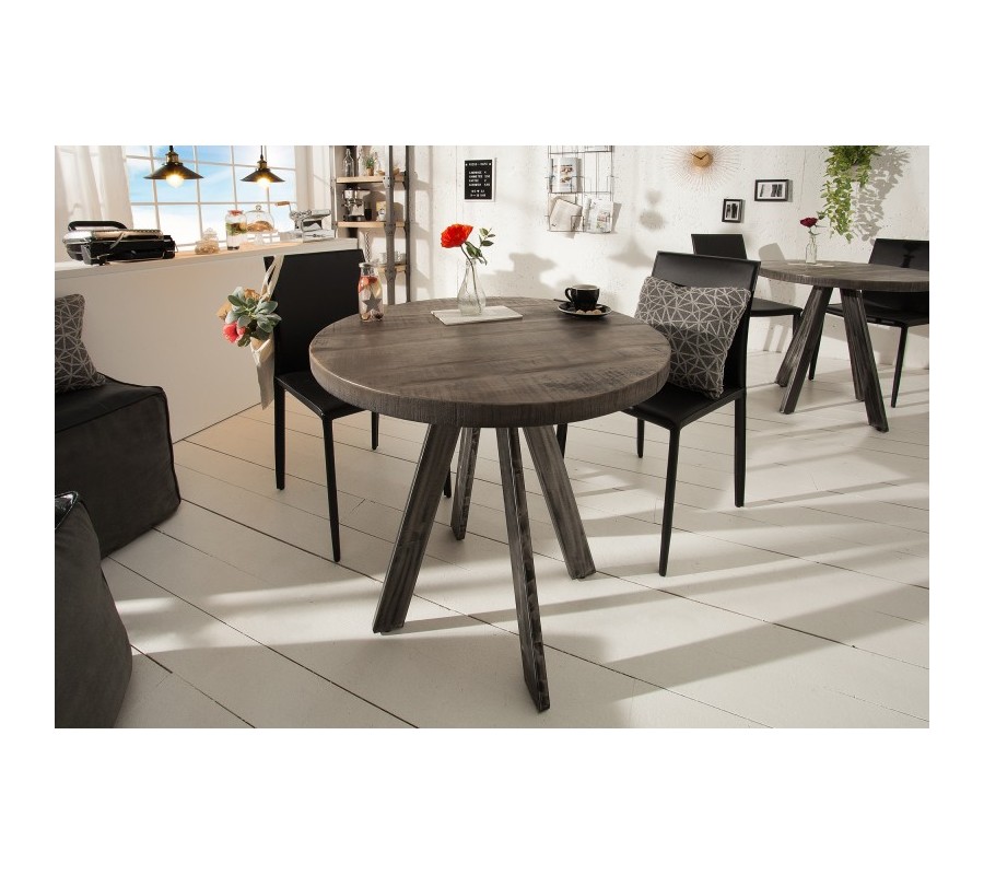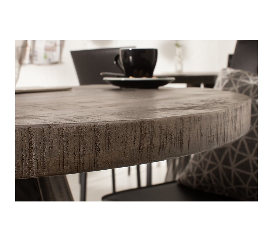 Industriálny dizajnový okrúhly jedálensky stôl Ivar šedý z masívu