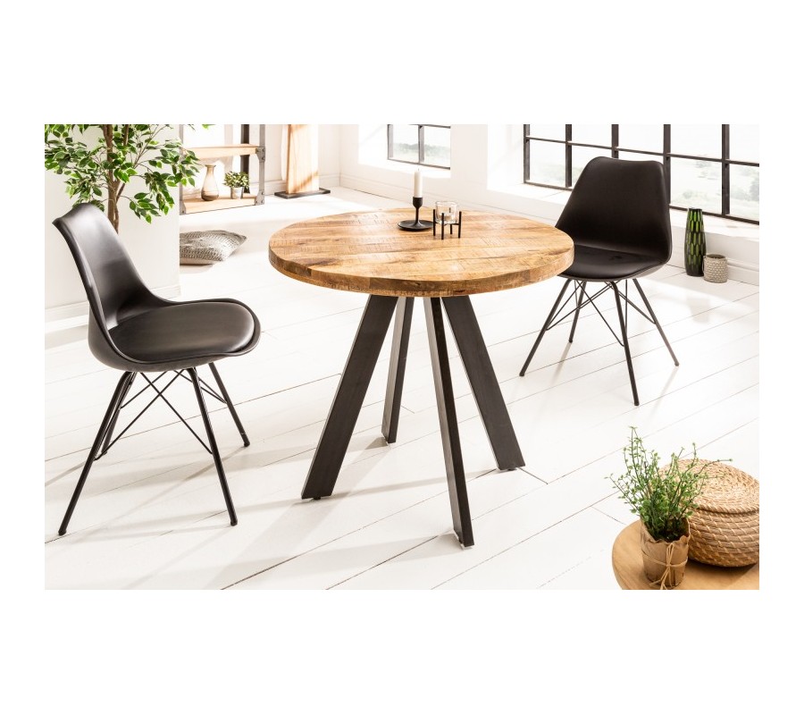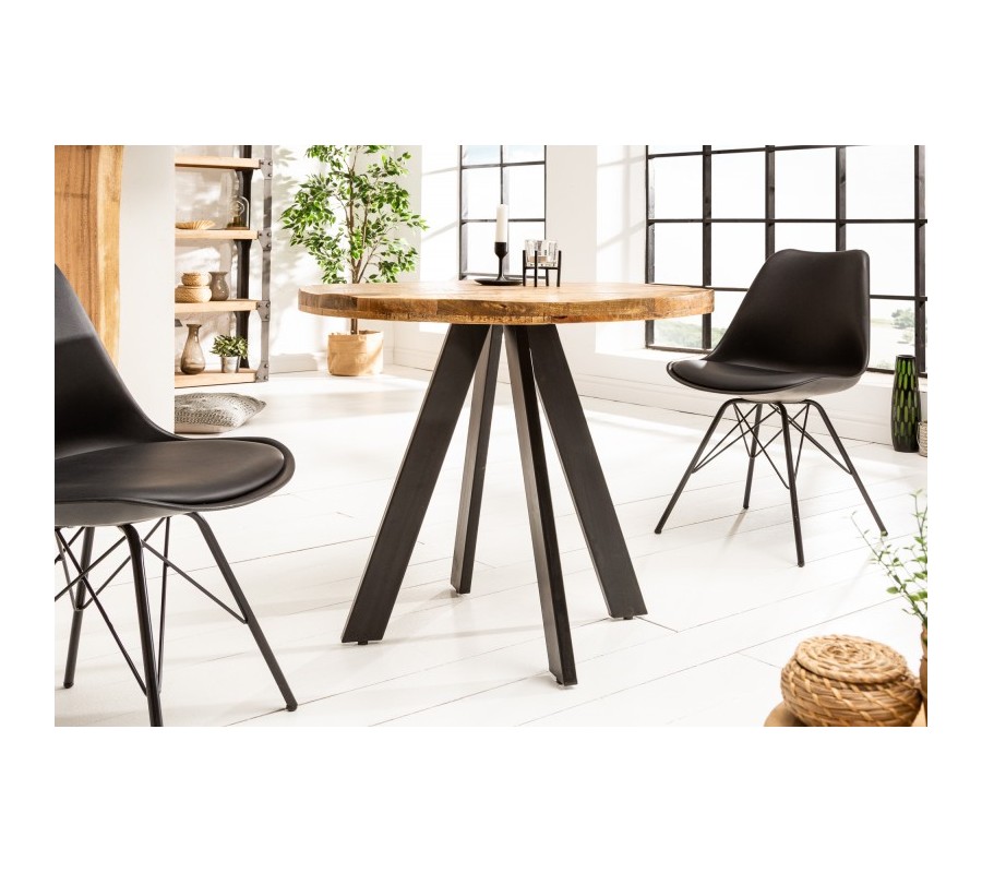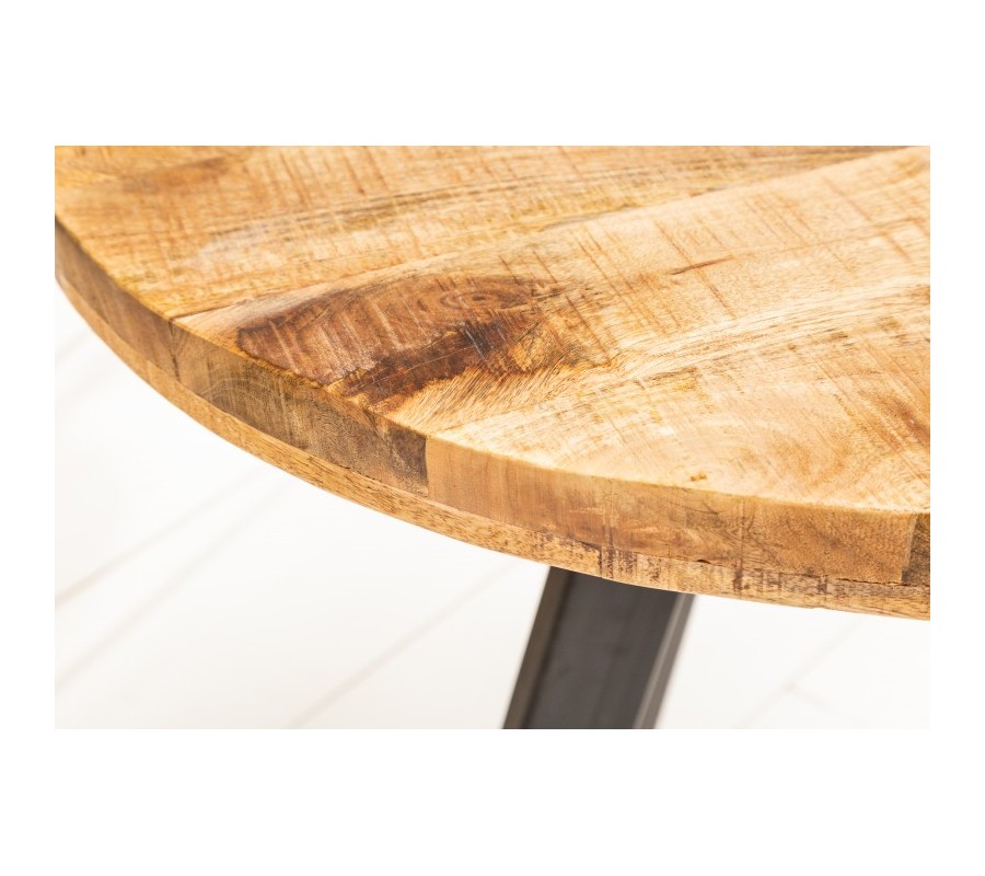 Industriálny dizajnový jedálensky stôl je vyrobený z prírodného dreveného masívu vo svetlohnedom prevedení. Spodnú časť tvoria štyri kovové nožičky, ktoré zabezpečujú celkovú stabilitu tohto stola. Horná doska je vyrobená z masívneho dreva mango, hrúbka 45mm. Stôl má okrúhly tvar, hodí sa najmä pri prechodnom bývaní, poprípade do menších priestorov. Dobre sa s ním kombinujú čierne jedálenské stoličky a taktiež zeleň, ktorá zvýrazní jeho čaro. Dokonalo zapadne do interiérov zladených v industriálnom štýle. Celkovo pôsobí elegantne a obohatí Vaše priestory.