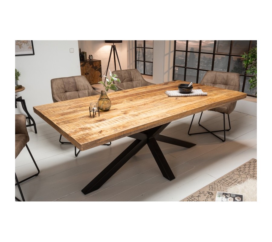 Štýlový jedálenský stôl Comedor zaujme svojou znamenitou kombináciou masívneho mangového dreva a kovovej konštrukcie hviezdicového tvaru. Je skvelým a originálnym kúskom do každého industriálne či moderne ladeného interiéru. Dizajn dopĺňa jemná kresba dreva a jeho svetlohnedá prírodná farba príjemne kontrastuje s čiernou farbou kovu. Jedálenský stôl Comedor vynikne v svetlých i tmavších miestnostiach a dá sa ľahko kombinovať so širokou škálou farieb. Je možné ho doladiť metalickými či drevenými doplnkami, pre dokonalý dojem odporúčame taktiež kombinovať s ďalšími kúskami z našej luxusnej kolekcie Comedor.