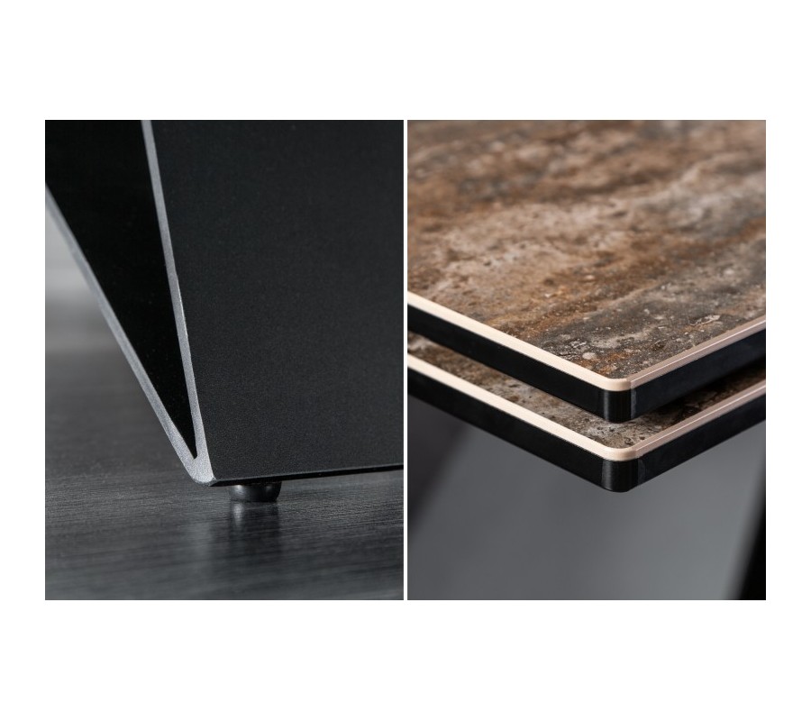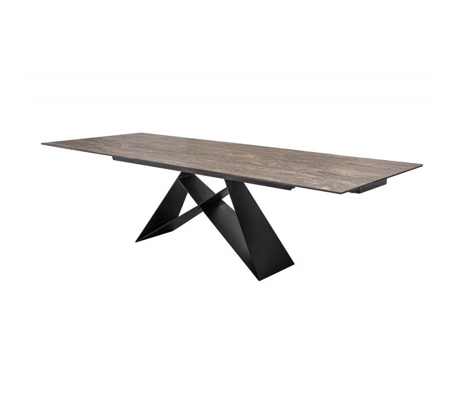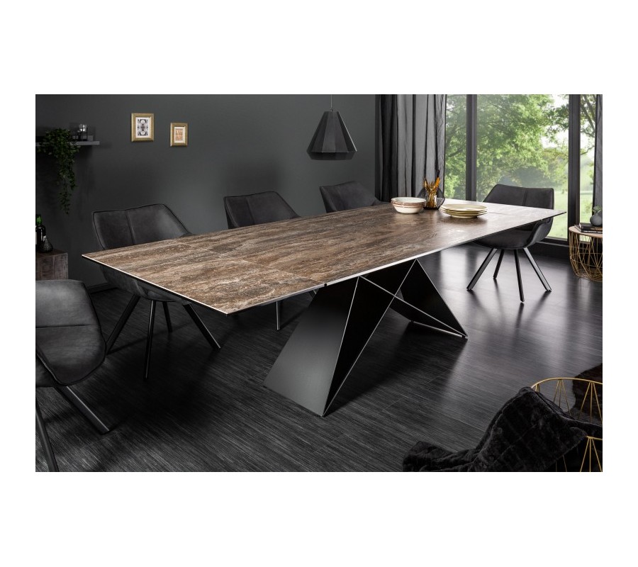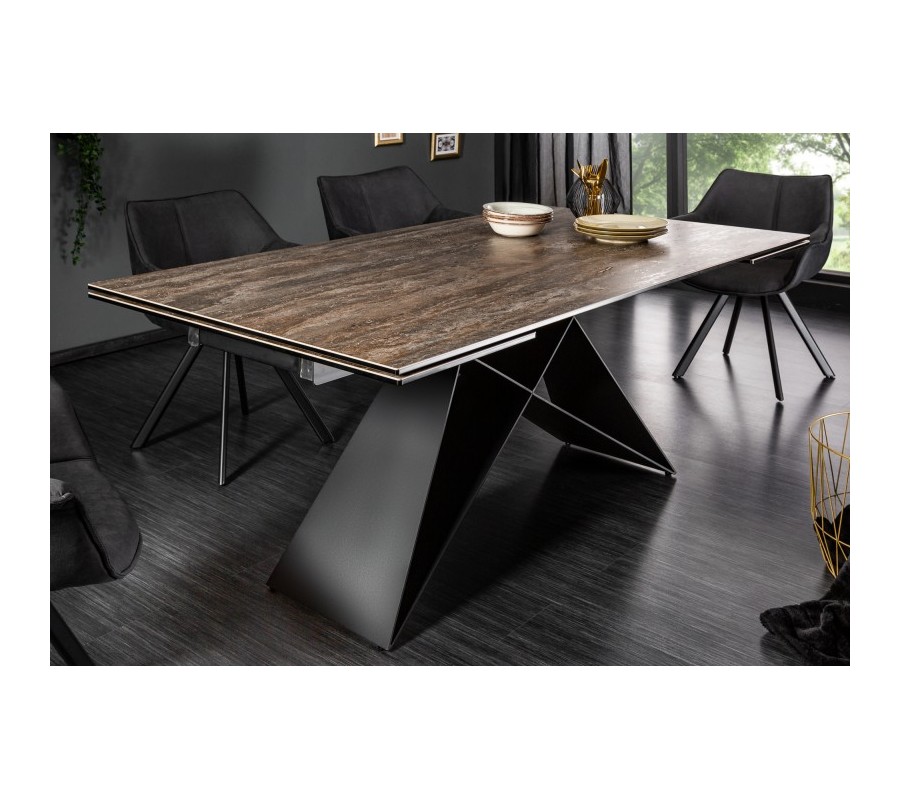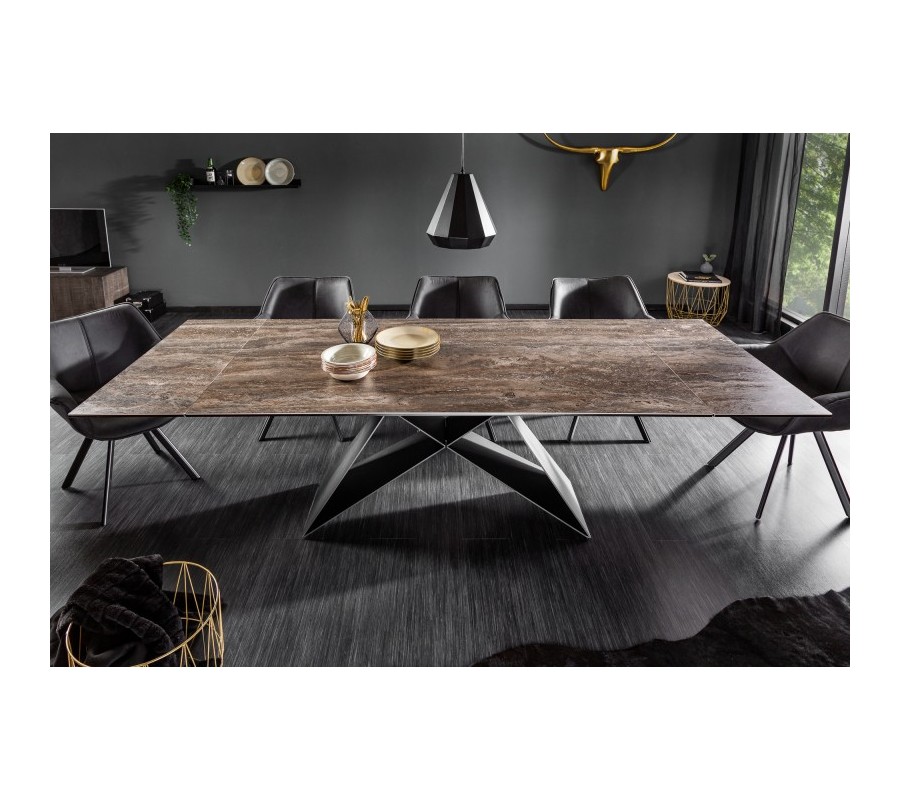 Dizajnový industriálny jedálensky stôl Copeland I zaujme svojou doskou s jedinečnou kresbou. Spodnú časť tvoria kovové nohy, ktoré majú tvar X a zabezpečujú celkovú stabilitu stola. Výhodou tohto jedálenského stola je to, že je modifikovateľný. Situačne sa dá upraviť jeho veľkosť roztiahnutím jeho ramien. Vhodnou kombináciou by boli prvky v industriálnom štýle a celkovo tmavé farebné odtiene. Zapadne do každej moderne zariadenej jedálne a obohatí Váš interiér o nový dojem.