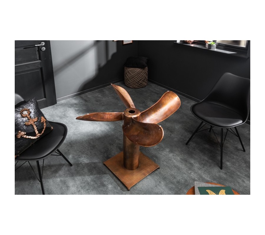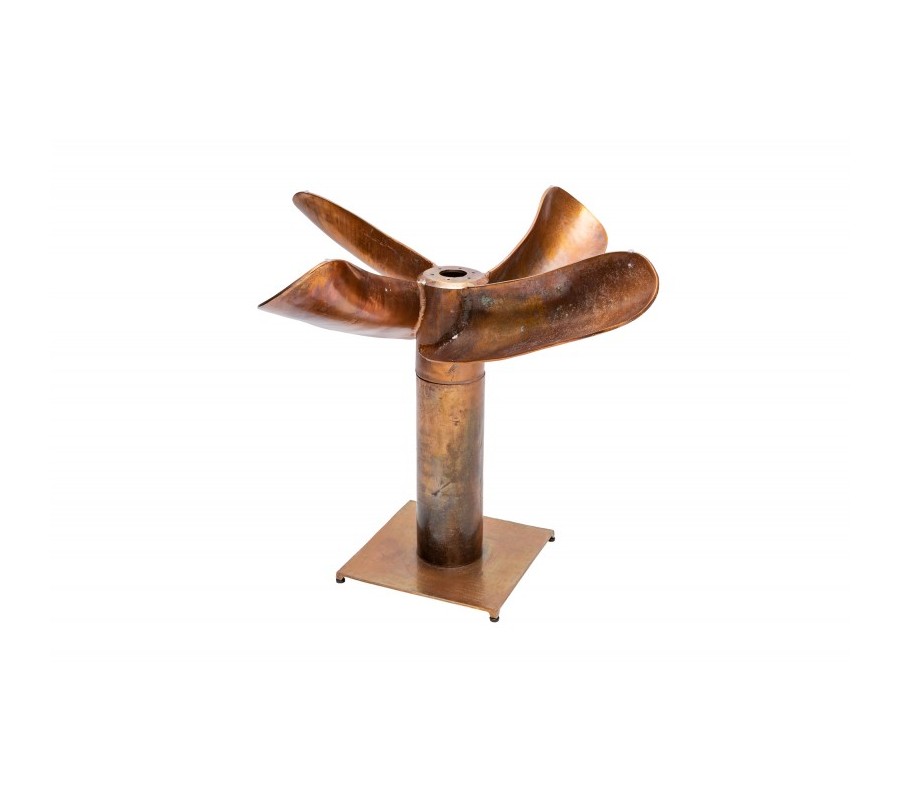 Tvar podstavy jedálenského stola Halice je inšpirovaný lodnou vrtuľou a vnáša tak do interiéru jedinečné čaro koloniálneho štýlu. Výrazná podstava v tvare lodnej vrtule je decentne doplnená priehľadnou kruhovou doskou z kvalitného bezpečnostného temperovaného skla, ktoré je po obvode doplnené jemnou fazetou . Neprehliadnuteľný tvar lodnej vrtule sa stáva symbolom hlbokého oceánu a je ideálne ju kombinovať s koloniálnymi doplnkami v podobe masívnych zrkadiel z vyplaveného dreva či lámp v tvare lodných uzlov. Jedinečný tvar v kombinácii s ošúchaným bronzovým povrchom dokonale zapadnú do surových industriálnych interiérov s prvkami dobrodružného koloniálneho štýlu. Jedálenský stôl Helice sa hodí do jedální s koloniálnym, masívnym či industriálnym nábytkom, stane sa neprehliadnuteľným aj v špecifických hotelových priestoroch či tematických podnikoch. Priemer sklenenej dosky je 105cm.