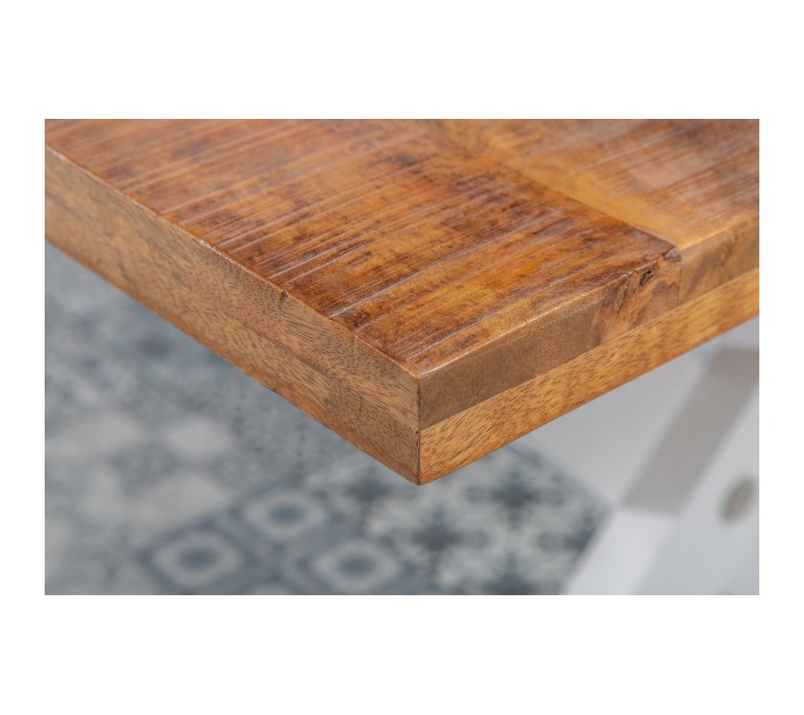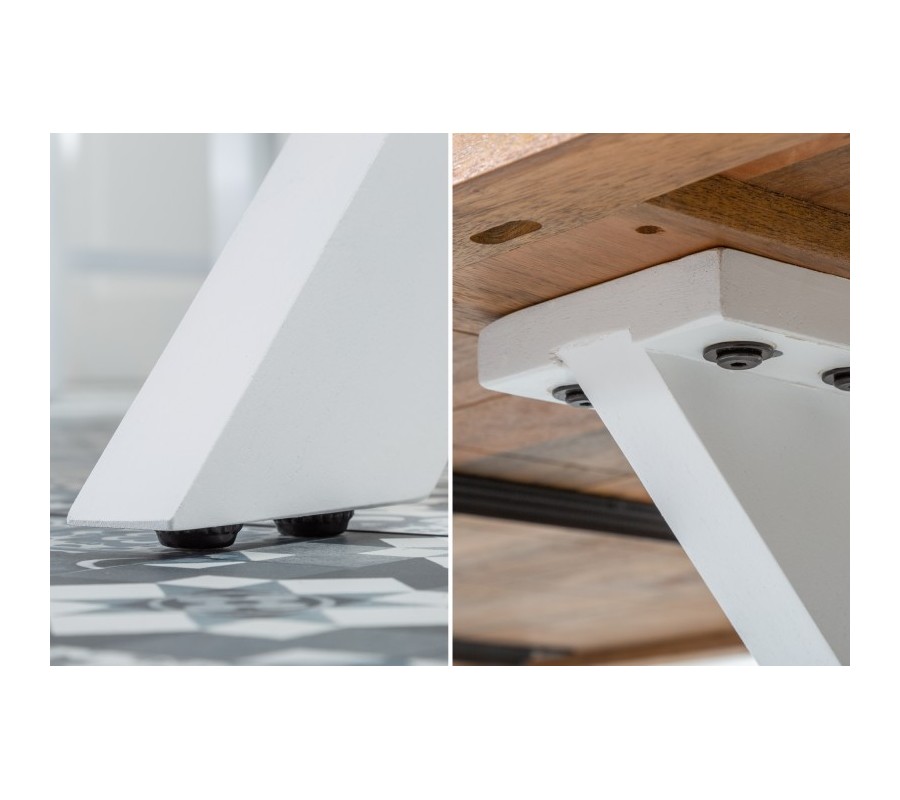 Luxusný a nadčasový jedálenský stôl Frida Blanca II je vyrobený z kvalitného mangového masívu a dokonale zapadne do domácností a reštaurácií ladených vo vidieckom štýle či dokonca modernom a nadčasovom prevedení provensálskeho štýlu. Jedálenský stôl Frida Blanca II disponuje nádhernou a priestrannou masívnou povrchovou doskou z mangového dreva v jeho naturálnych odtieňoch s povrchovou úpravou, ktorá necháva dokonale vyniknúť prirodzenú kresbu dreva. Biele masívne nohy dokonale dopĺňajú masívnu a honosnú dosku o štipku jemnosti a nehy. V rámci doplnkov preto odporúčame jedálenský stôl Frida kombinovať najmä s dekoráciami v tlmených odtieňoch a s výrobkami z masívneho dreva.