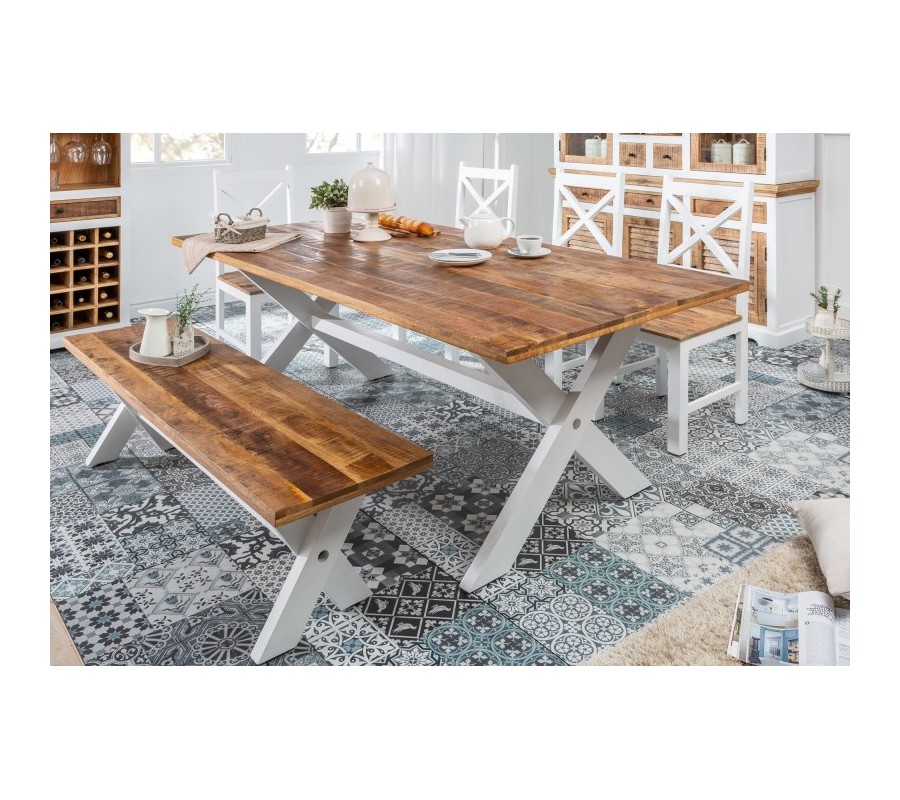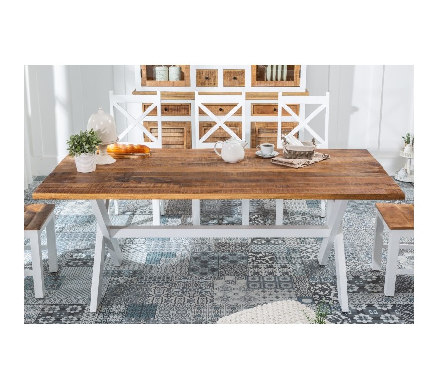 Jedinečný a nadčasový jedálenský stôl Frida Blanca I je vyrobený z kvalitného mangového masívu a dokonale zapadne do domácností a reštaurácií ladených vo vidieckom štýle či dokonca modernom a nadčasovom prevedení provensálskeho štýlu. Jedálenský stôl Frida Blanca I disponuje nádhernou a priestrannou masívnou povrchovou doskou z mangového dreva v jeho naturálnych odtieňoch s povrchovou úpravou, ktorá necháva dokonale vyniknúť prirodzenú kresbu dreva. Biele masívne nohy dokonale dopĺňajú masívnu a honosnú dosku o štipku jemnosti a nehy. V rámci doplnkov preto odporúčame jedálenský stôl Frida kombinovať najmä s dekoráciami v tlmených odtieňoch a s výrobkami z masívneho dreva.