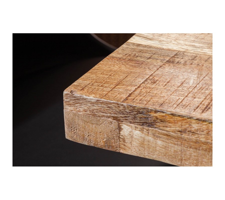 Štýlový jedálenský stôl Steele Craft je vyrobený z masívneho mangového dreva, ktoré vám zabezpečí skvelú kvalitu a vďaka viditeľnej kresbe dreva na povrchu aj zaujímavý naturálny vzhľad. Prírodný materiál je kombinovaný s čiernymi nohami z kovu, a toto prepojenie dodáva stolu industriálny nádych. Preto je vhodný najmä do industriálne alebo moderne ladených jedální, či štýlových konferenčných alebo zasadacích miestností. Vynikne v tmavších priestoroch v kombinácii s čiernymi alebo hnedými stoličkami a ďalšími kúskami z masívneho dreva. Pre inšpiráciu odporúčame aj zvyšok našej kolekcie Steele Craft.