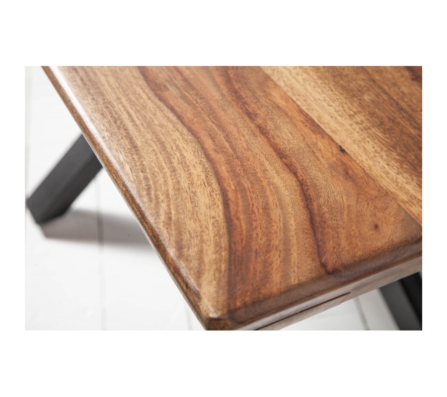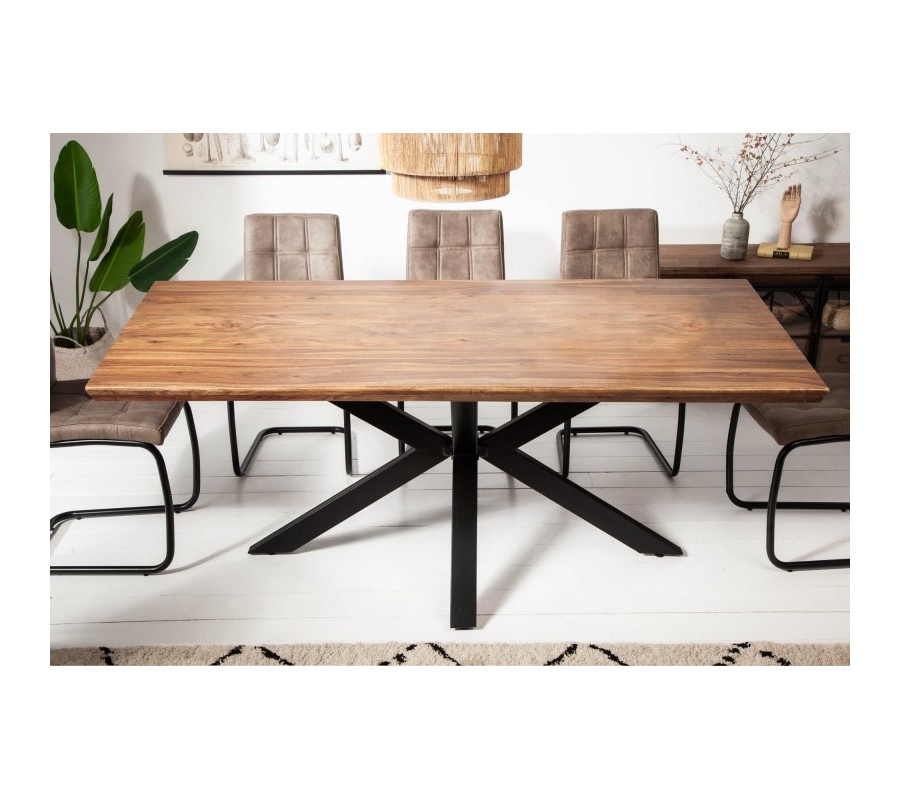 Štýlový jedálenský stôl Cosmos je kúskom vhodným najmä do minimalistickejšie či alternatívne ladených jedální či kuchýň. Je vyrobený z masívneho dreva sheesham, ktoré v kombinácii s čiernymi kovovými nohami vytvára nadčasový industriálny efekt. Samotné nohy pôsobia ako originálny prvok- v strede sa krížia a vytvárajú tak zaujímavý hviezdicovitý vzhľad. Povrch upravený voskovaním zvýrazňuje prírodný charakter a prirodzenú štruktúru dreva. Jedálenský stôl Cosmos sa vďaka univerzálnej hnedo-čiernej farebnosti hodí skutočne kamkoľvek. Krásne vynikne v svetlých priestoroch v kombinácii s bielymi stenami a stoličkami s textilným či koženým čalúnením. Za stôl sa pohodlne usadí šesť až osem osôb.