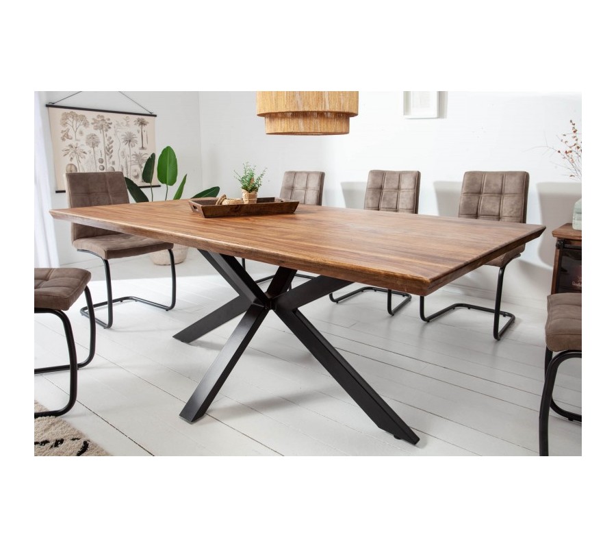 Industriálny jedálenský stôl Cosmos z masívneho dreva sheesham a kovovými nohami 180cm