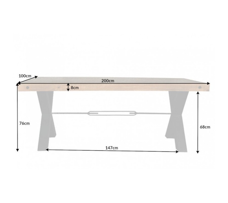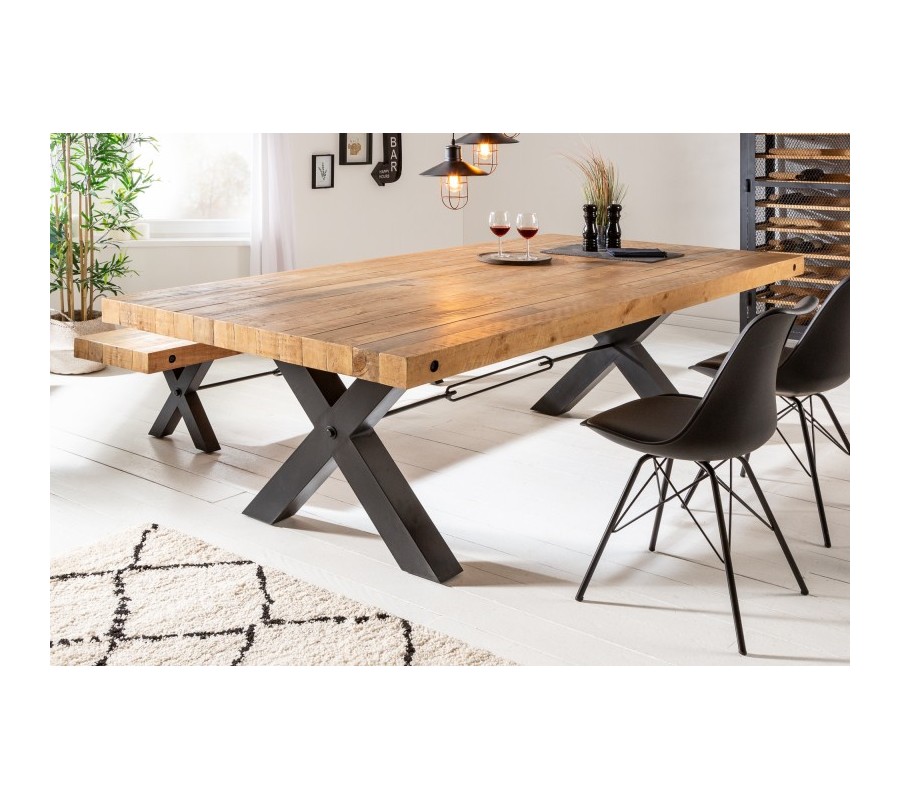 Industriálny jedálenský stôl Freya z masívu v prírodnej hnedej farby s čiernymi kovovými nohami a vrchnou doskou s rámom 206 cm