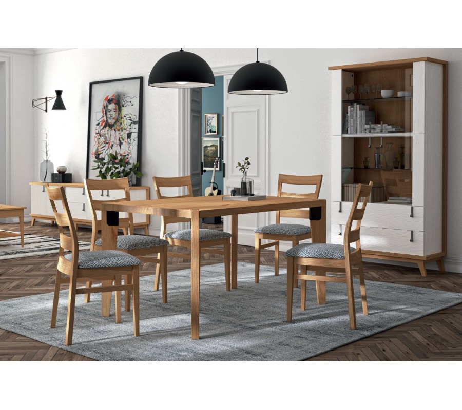 Ak hľadáte do vašej jedálne jedinečný a kvalitný kúsok, ktorý k vám do interiéru bezchybne zapadne, ste na správnom mieste! Tento exkluzívny jedálenský stôl je prepojením elegantného dizajnu, čistého, minimalistického spracovania a kvalitného materiálu. Masívne drevo k vám domov vnesie nádych prírody a vzdušný dizajn vašu miestnosť opticky zväčší. Ponúkame taktiež možnosť výberu farebných odtieňov z nášho vzorkovníka, vďaka čomu si môžete stôl prispôsobiť presne podľa vašich predstáv a potrieb. Zaujímavým estetickým prvkom na stole sú tiež zrezané rohy elegantne spájajúce povrchovú dosku s nohami. Ak túžite po modernoma minimalistickom, no zároveň na pohľad pútavom interiéri, odporúčame vám aj ďalšie luxusné kúsky z našich kolekcií Sajonia a Estoril!