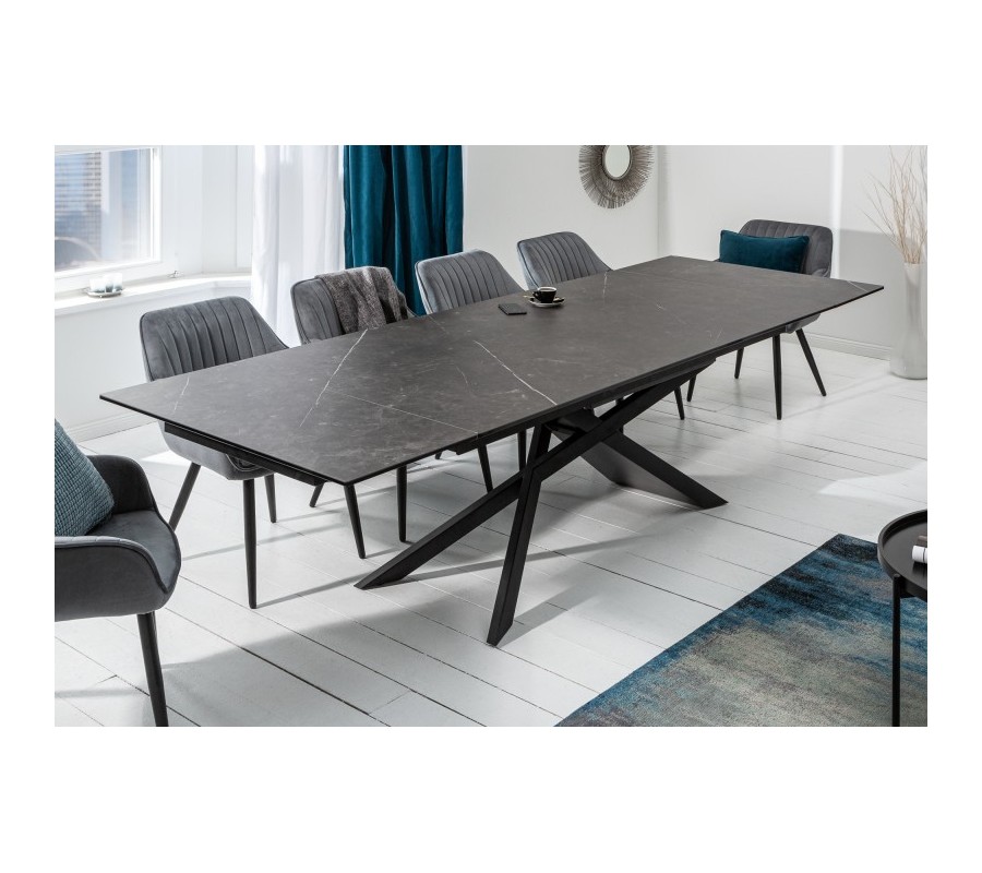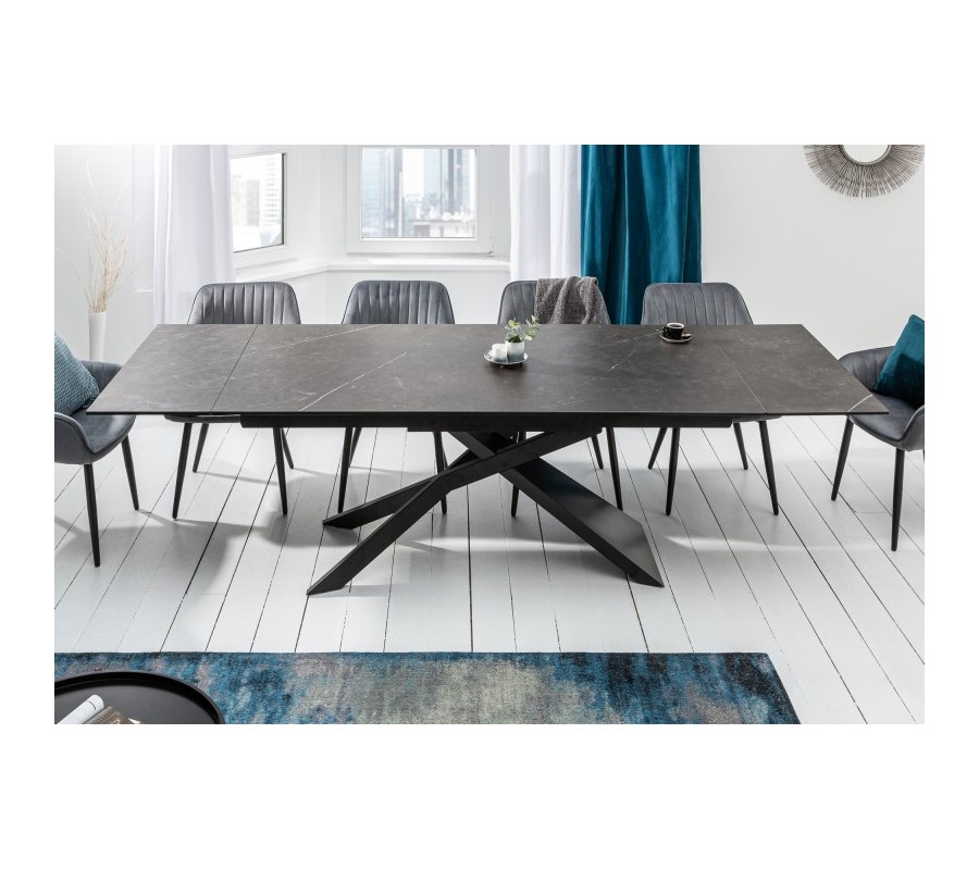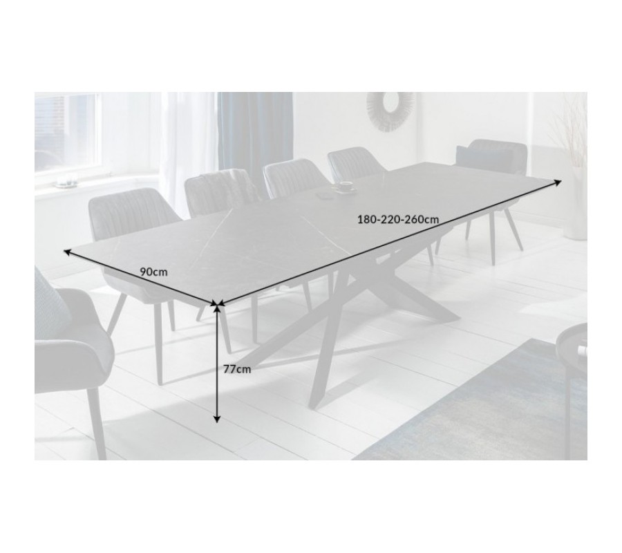 Mramorový rozkladací jedálenský stôl Marmol s kovovými nohami v tmavom odtieni 180-220-260cm